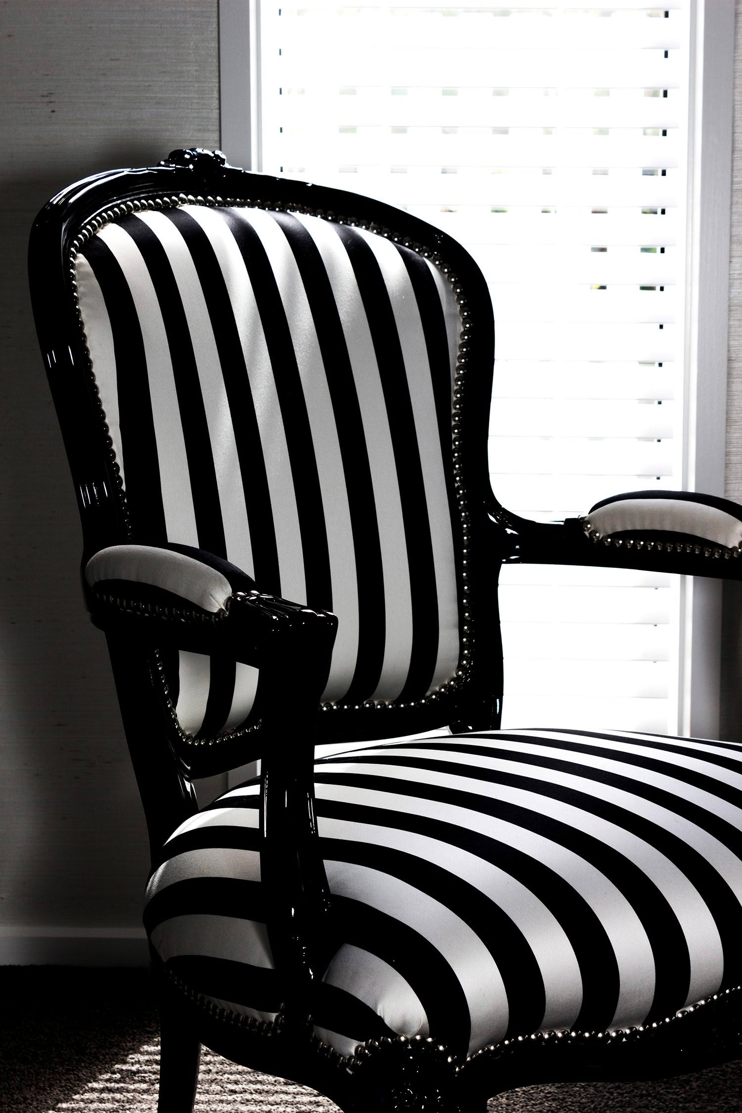 Cozy window seat with striped cushions and blinds