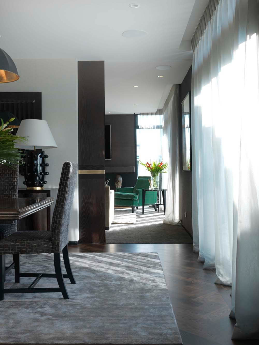 As part of our brief we were to present a full interior design package which included some architectural elements with a marble entrance wall, we were to offer design on the kitchens + bathrooms, door hardware, lighting, flooring, window furnishings, wallcoverings and obviously the furniture and interior furnishings.