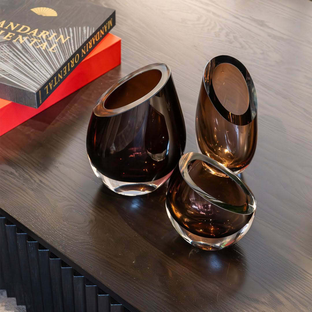 The Archie Vase this hand-blown glass vase features a sophisticated smokey coke color, adding a touch of refined elegance to any space. Its unique, fluid shape and subtle hues make it a striking decorative piece, perfect for displaying flowers or standing alone as a stylish accent in your home. Each vase is one-of-a-kind, showcasing the craftsmanship of skilled artisans.