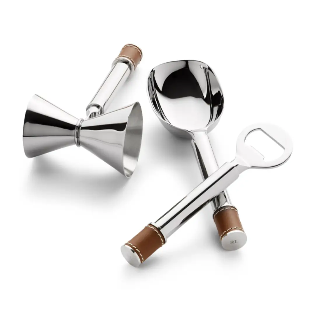 Luxury cocktail set in leather box with glasswareLuxury bar set with glasses and decanter in leather case
