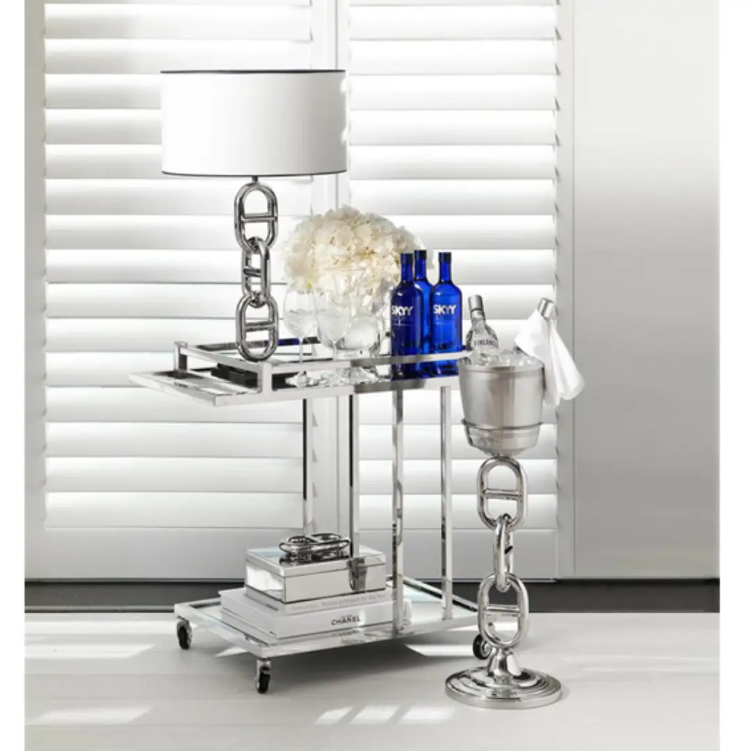 Bestow a little Hollywood glamour on your home with the Beverly Hills Trolley. This stunning piece comprises a sleek stainless steel frame with bronze finish and bevelled mirror glass. A perfect addition for serving drinks and cocktails, easy to move due to its castor wheels and sleek handle.