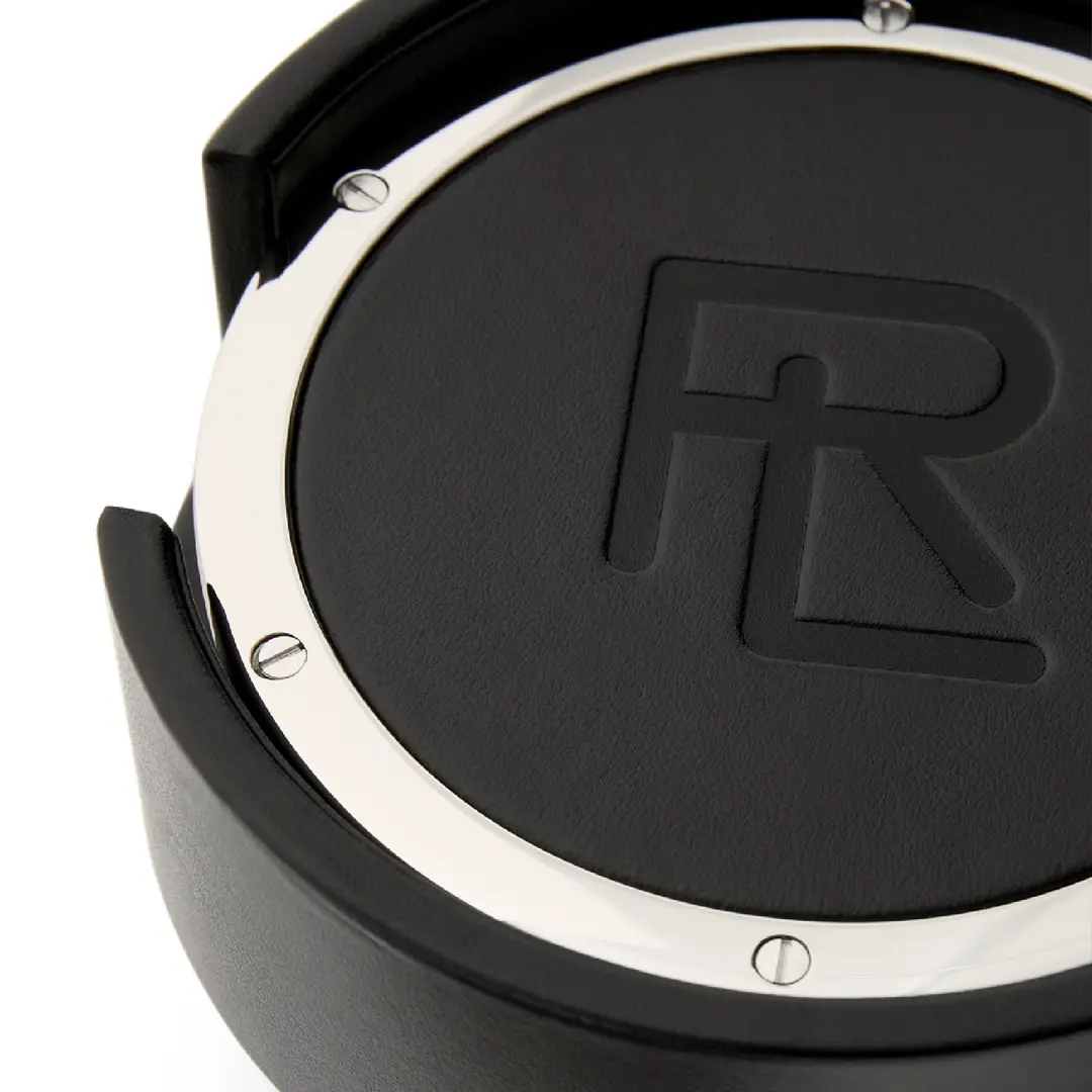 Inspired by Ralph Lauren’s 45 MM Chronometer watch, this set features four coasters crafted from luxurious black leather framed with stainless steel and debossed with our stacked monogram logo.