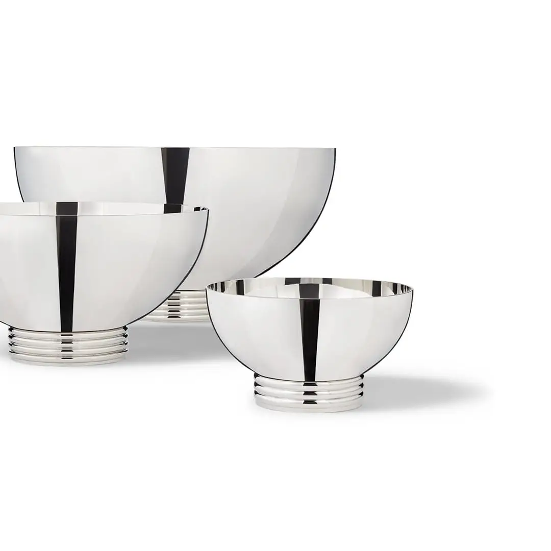 Timeless Art Deco style inspires the Thorpe collection, which is crafted from solid stainless steel with a gleaming polished finish. The centerpiece bowl features ribbed bands reminiscent of Ralph Lauren’s iconic Hudson St. lounge chair, elevating the clean, modern silhouette.