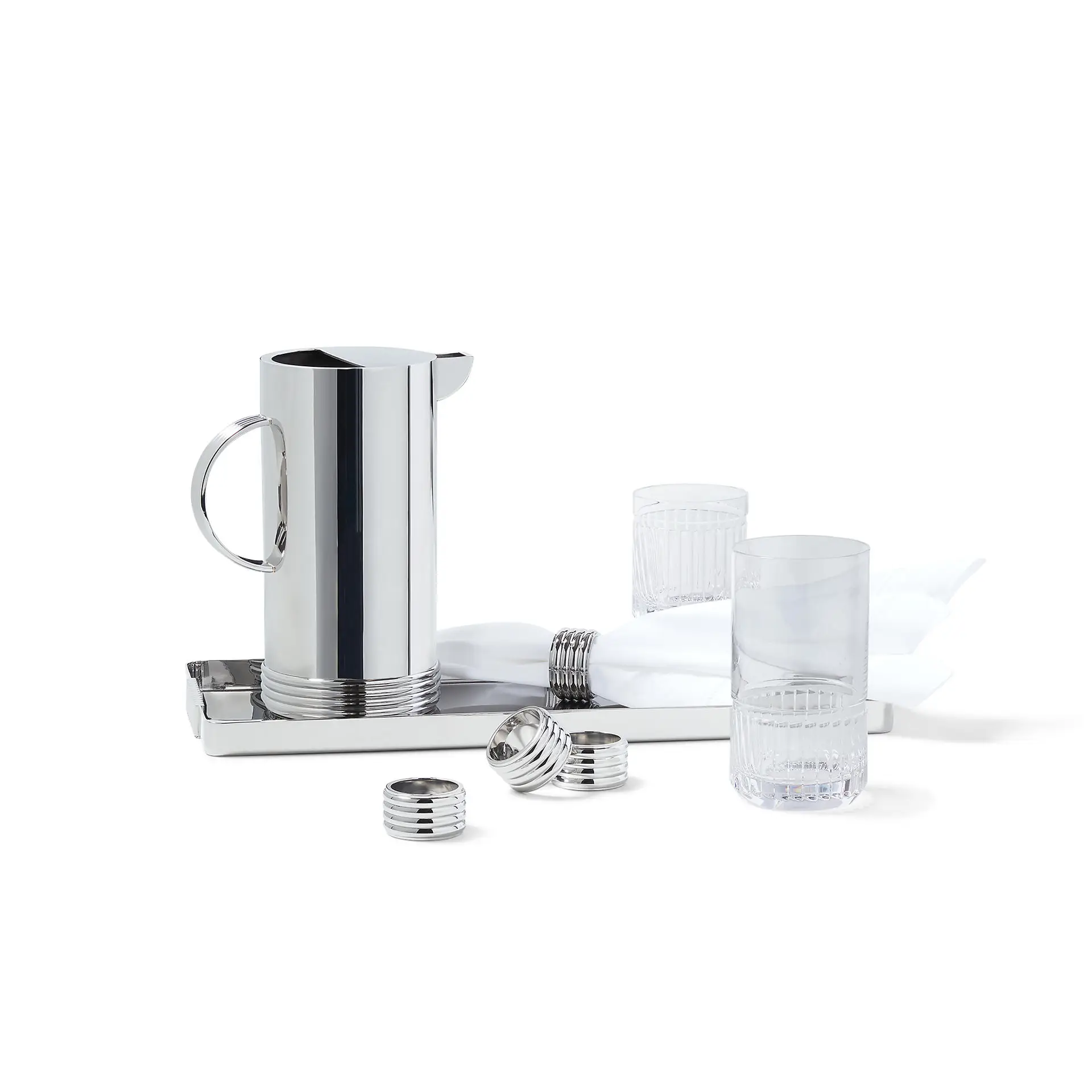 Timeless Art Deco style inspires the Thorpe collection, which is crafted from solid stainless steel with a gleaming polished finish. The pitcher features ribbed bands reminiscent of Ralph Lauren’s iconic Hudson St. lounge chair, elevating the clean, modern silhouette.