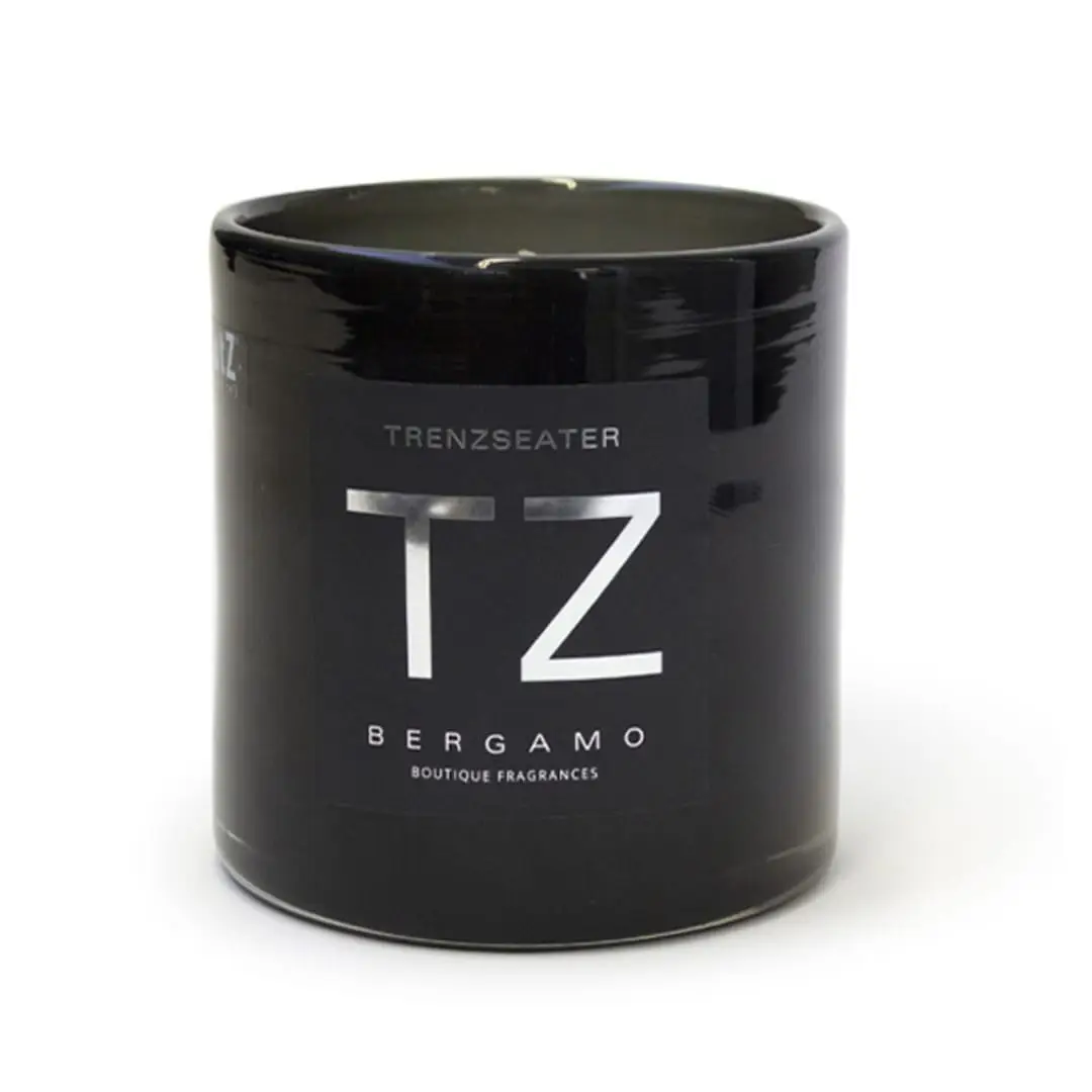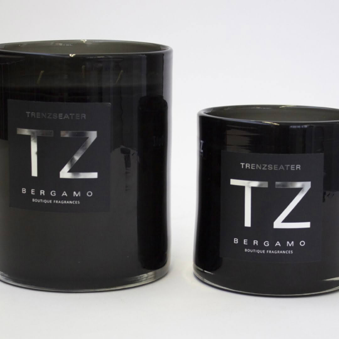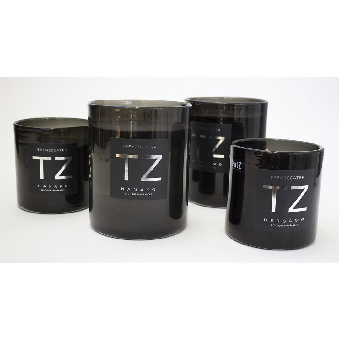 Black Hanako boutique fragrances candle by TrenzseaterClose-up of black scented candle with 'TZ' logo