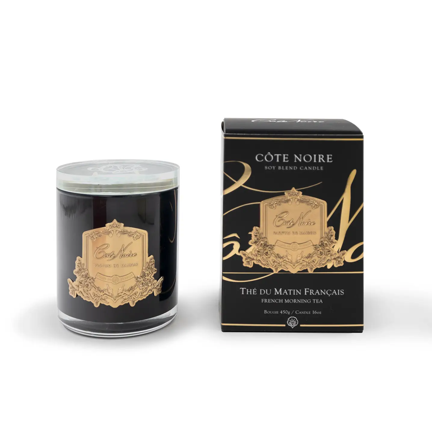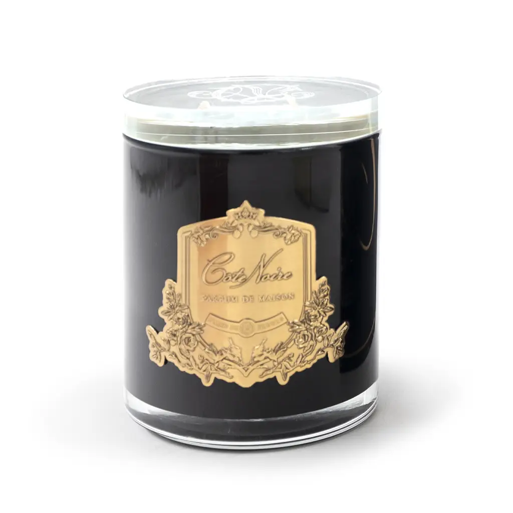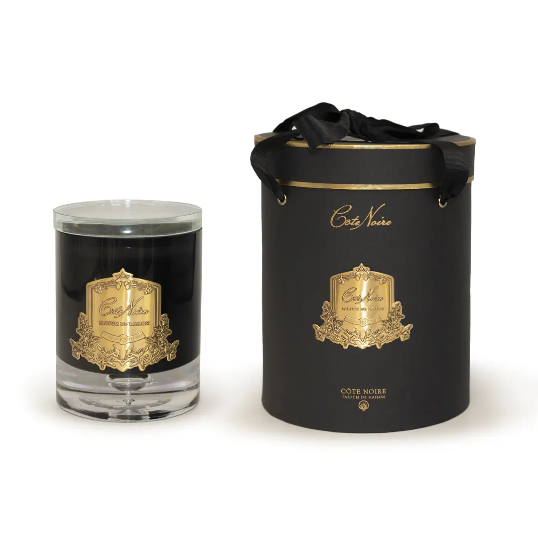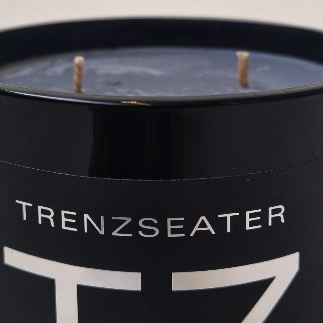 Black Hanako boutique fragrances candle by TrenzseaterClose-up of black scented candle with 'TZ' logo