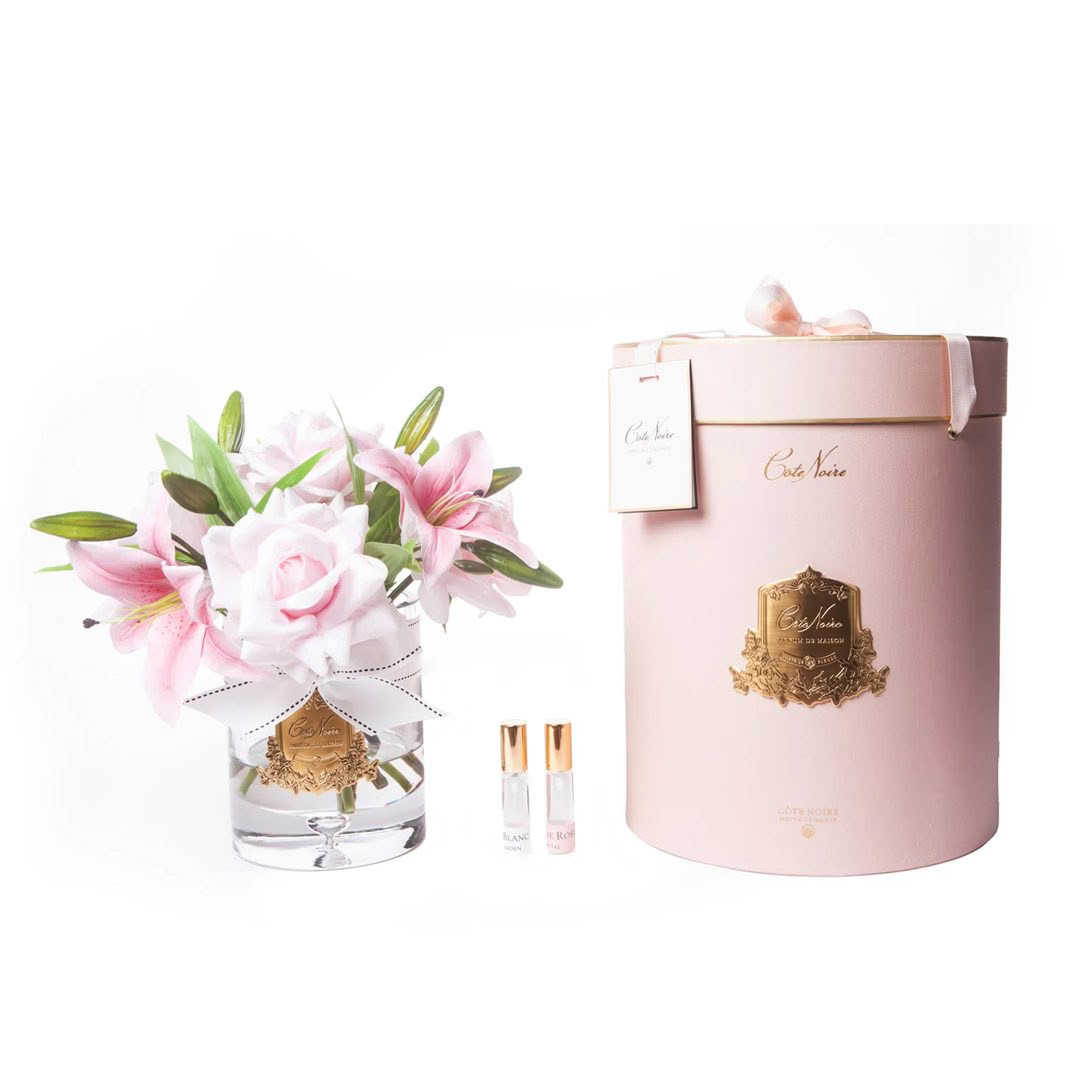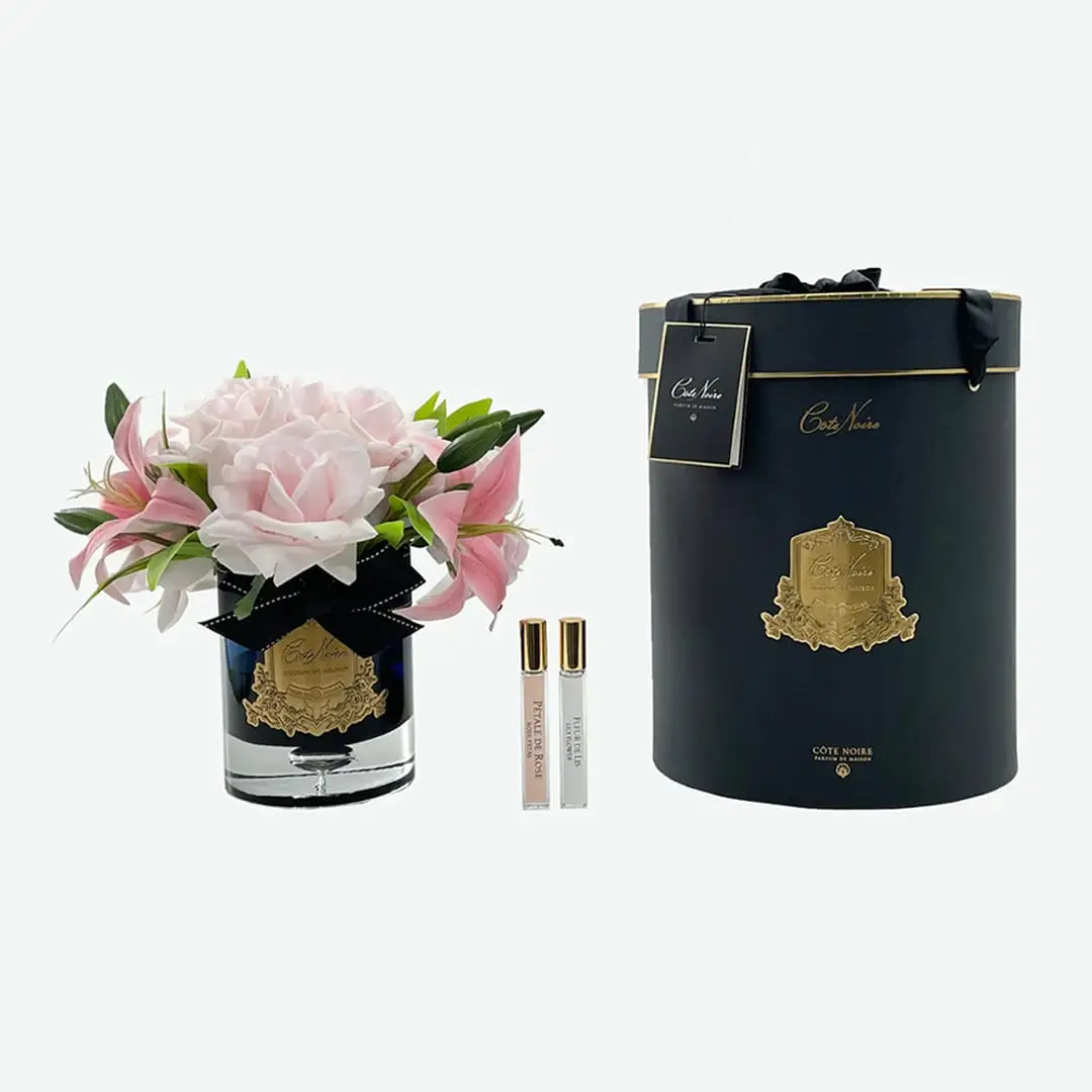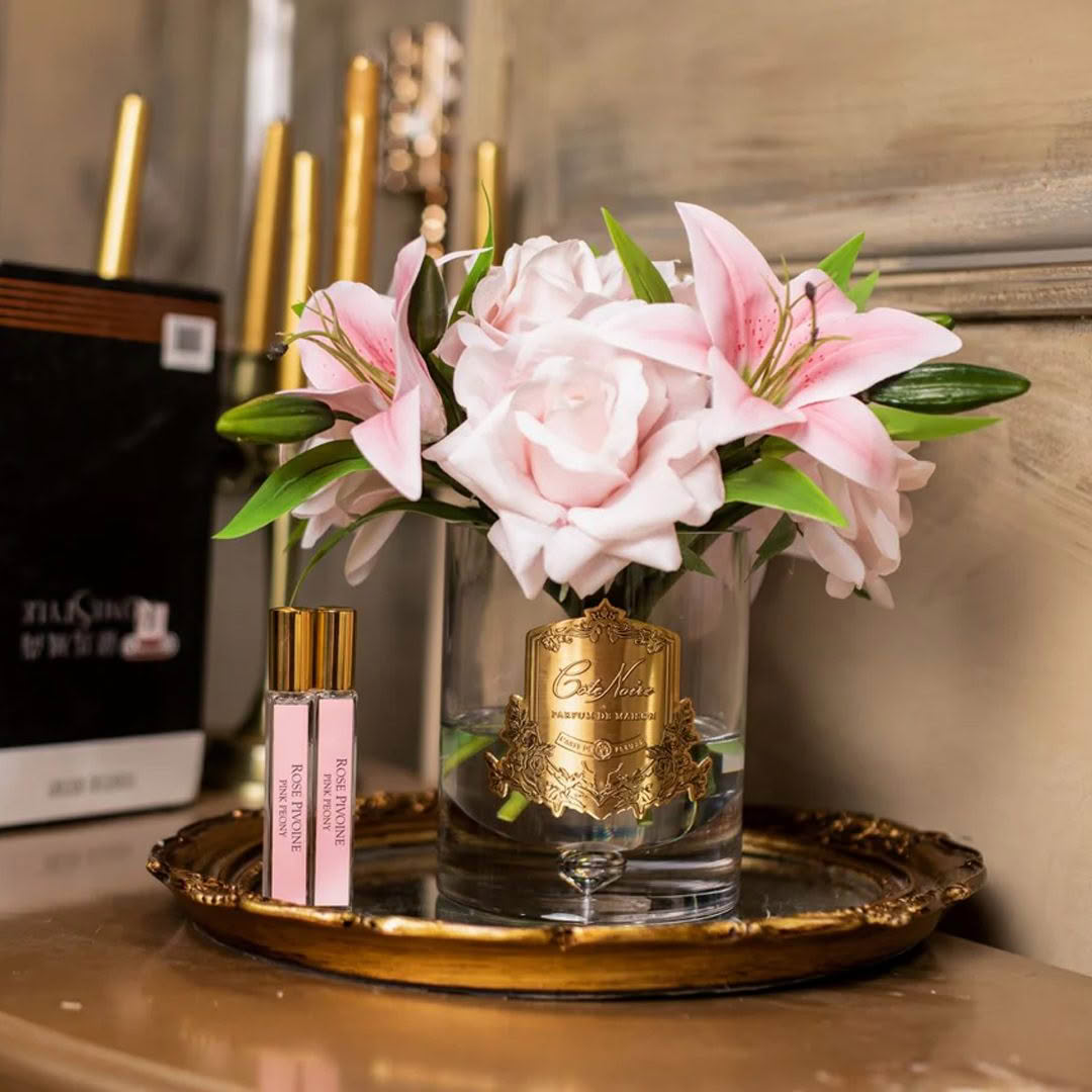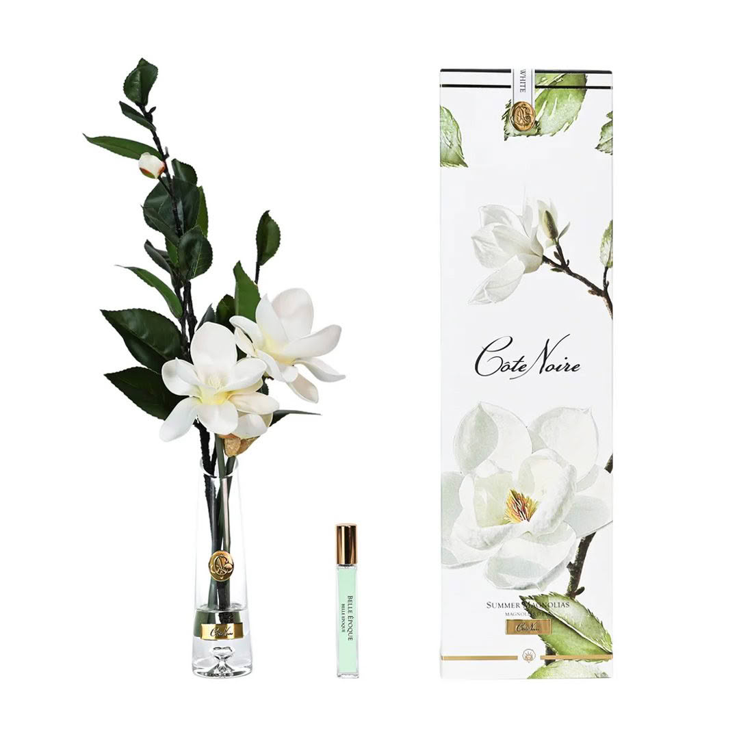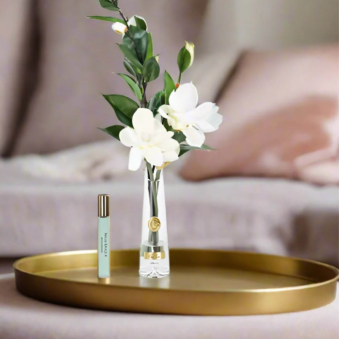 Apsley diffuser set with bottle, reeds, and labelled boxLit candle and diffuser on tray, elegant home decor