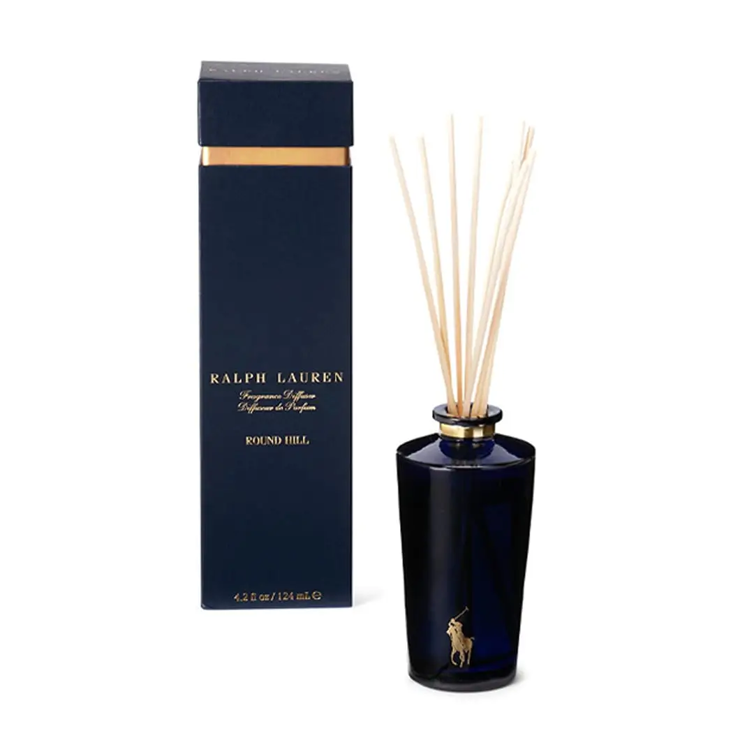 Ralph Lauren fragrance diffuser with navy blue packagingRalph Lauren fragrance diffuser with reed sticks