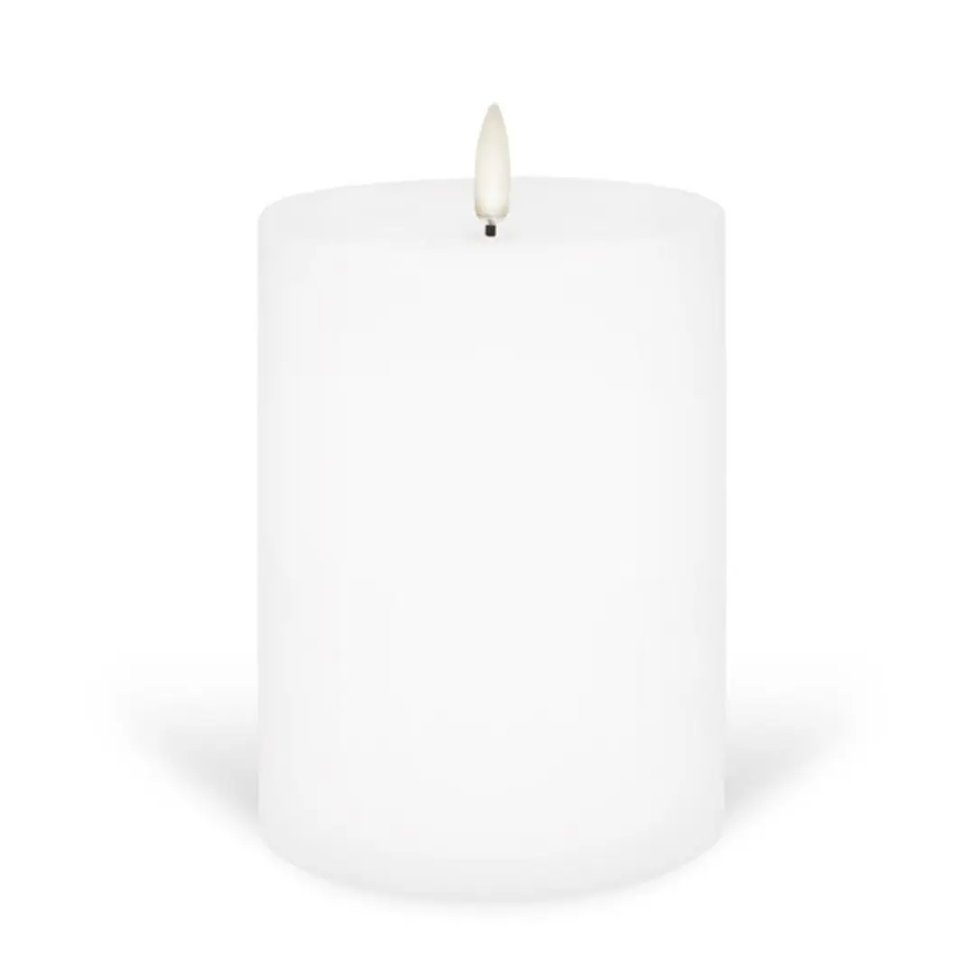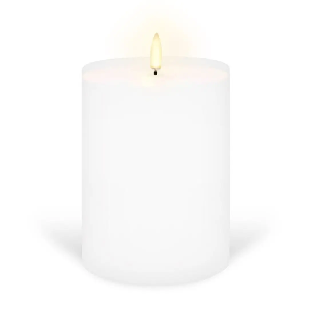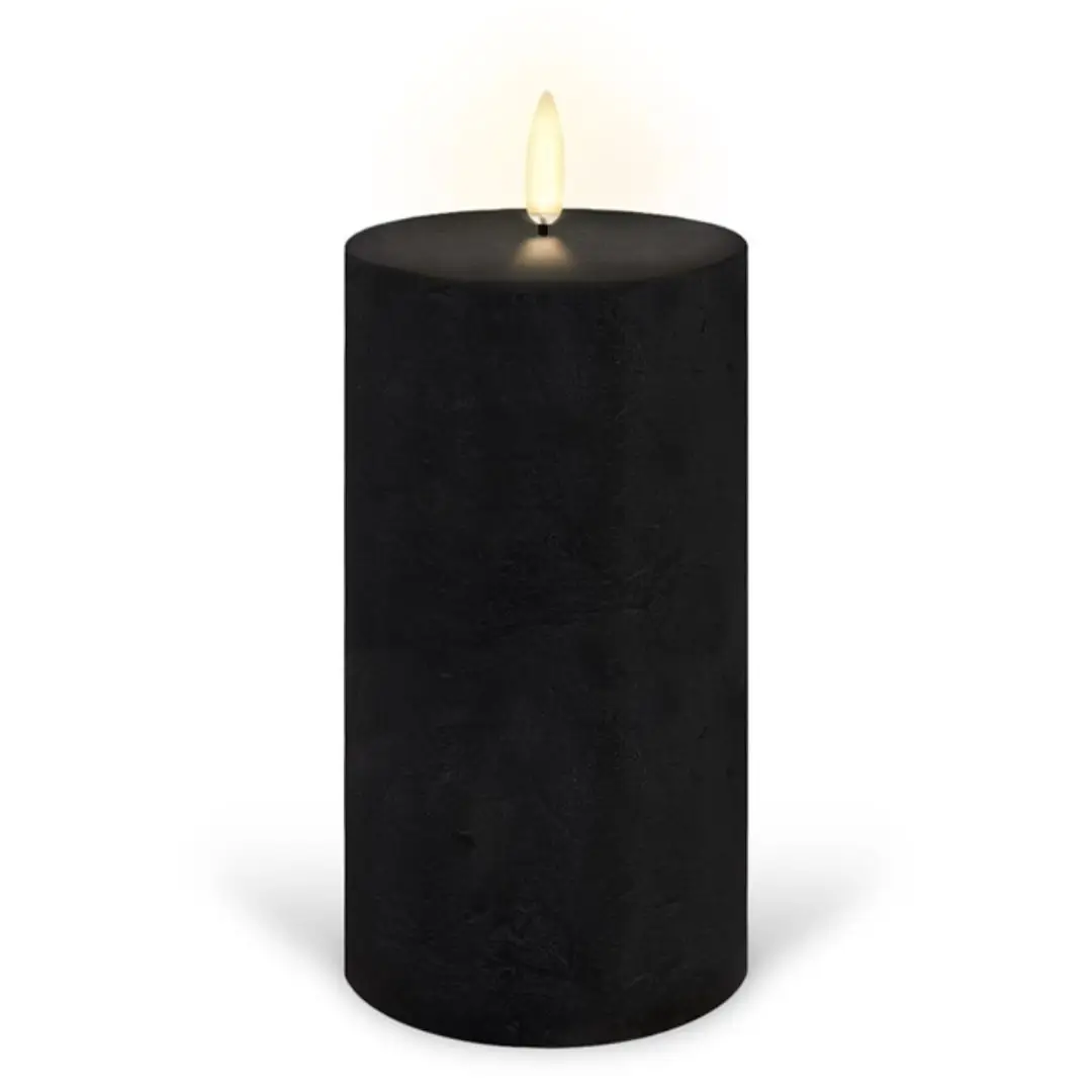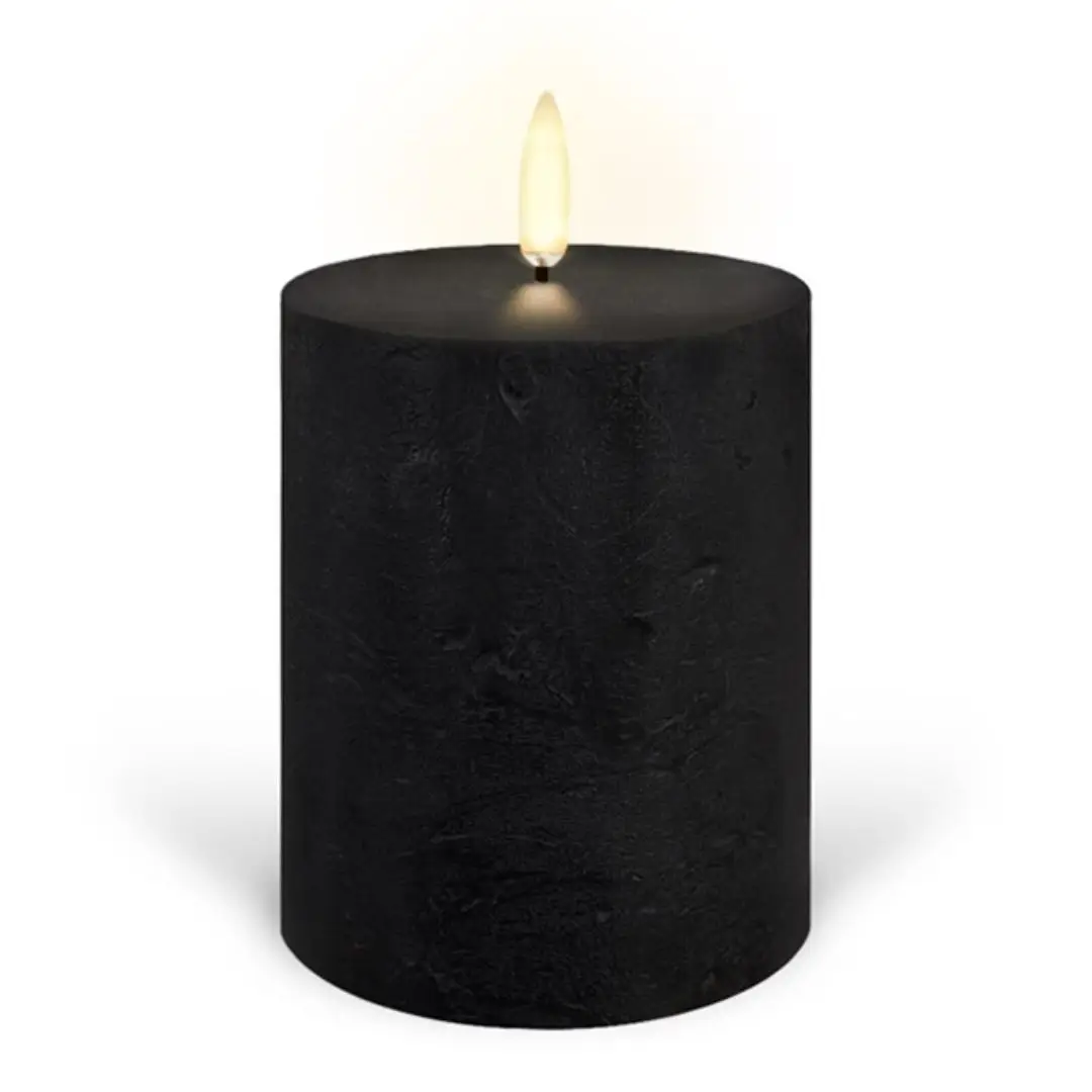 Apsley candle with black and white marbled designIlluminated spotted candles on bathroom countertop