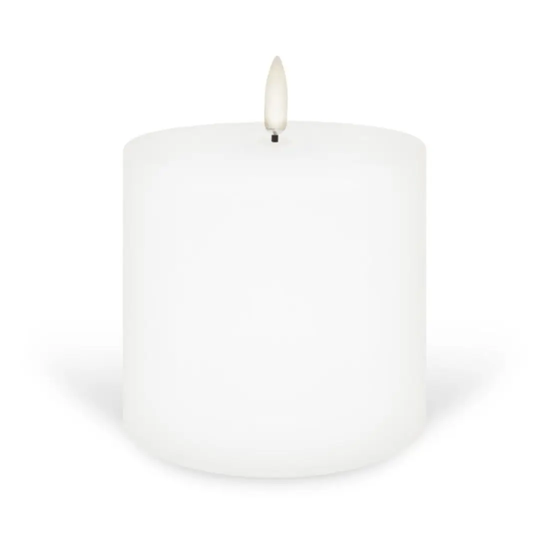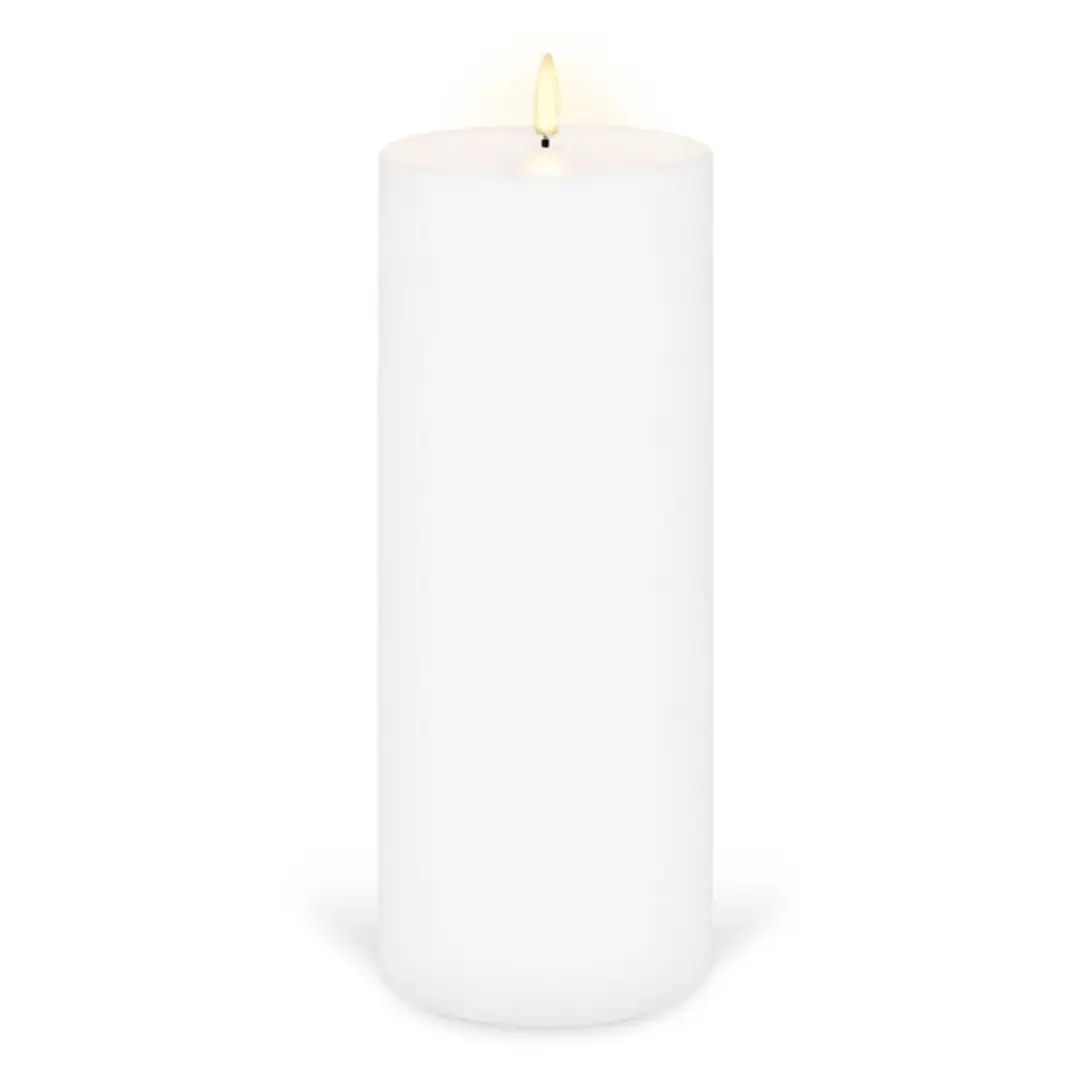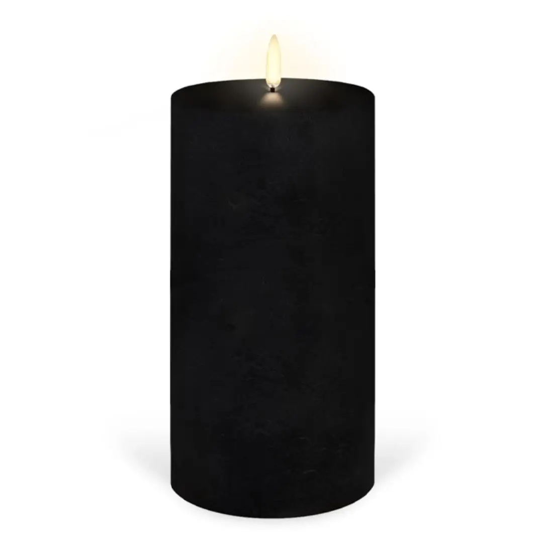 Apsley candle with black and white marbled designIlluminated spotted candles on bathroom countertop