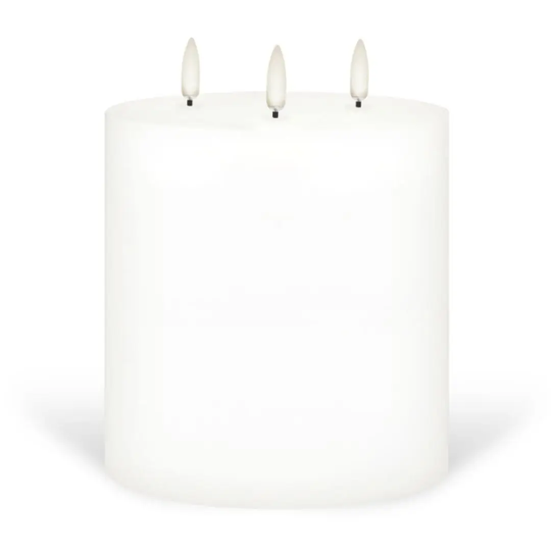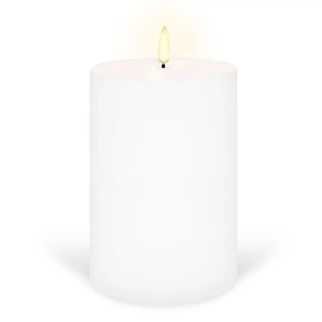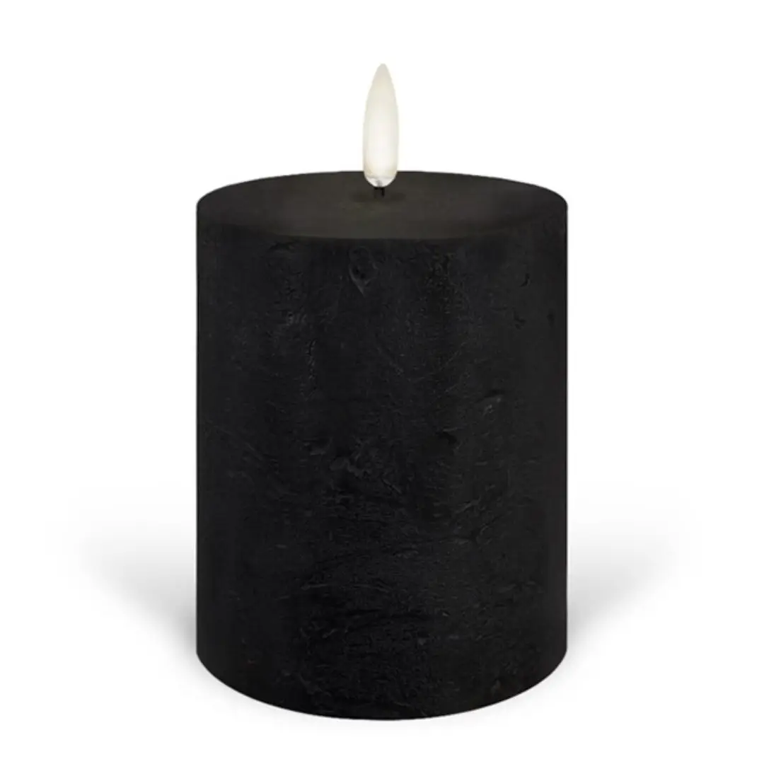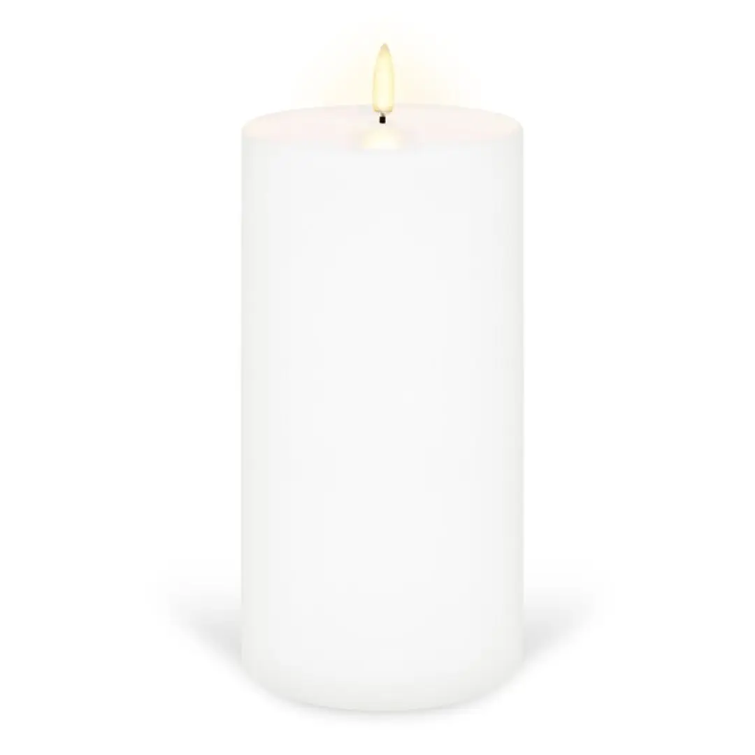 Apsley candle with black and white marbled designIlluminated spotted candles on bathroom countertop