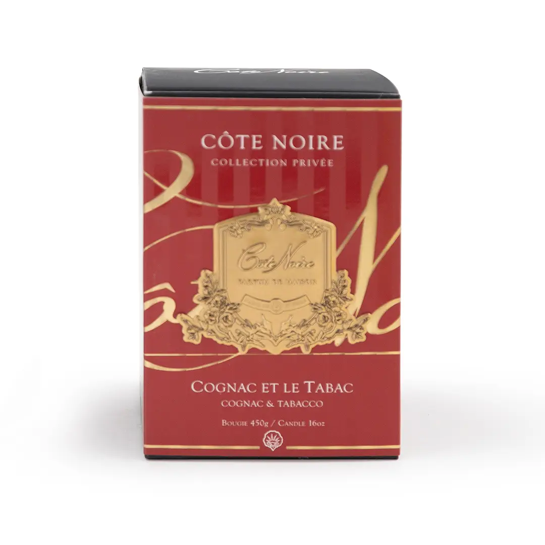 The Cognac & Tobacco fragrance is a warm aroma rich in leather & rolled in cigars- the perfect fragrance to round off an evening. Notes of bergamot & nutmeg, cedarwood & aged leather finishing in a base of musk, tobacco & cognac.