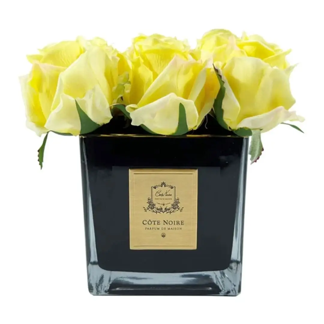 COUTURE 9 ROSES – YELLOW IN BLACK VASE – COTE NOIRE