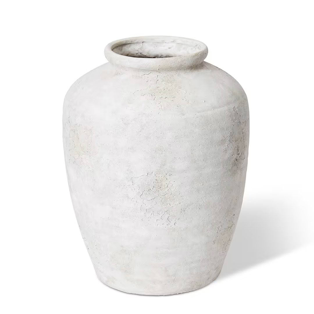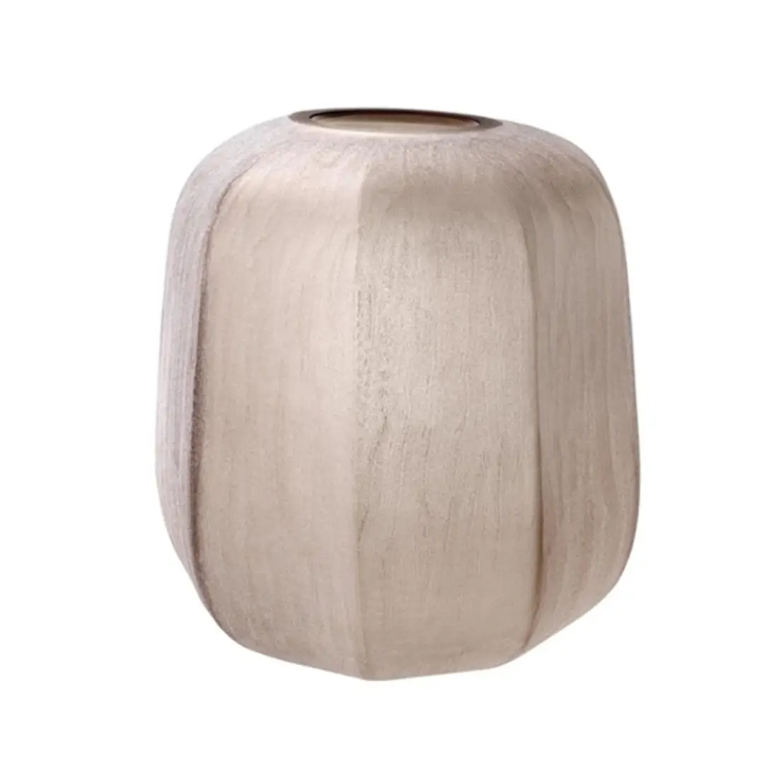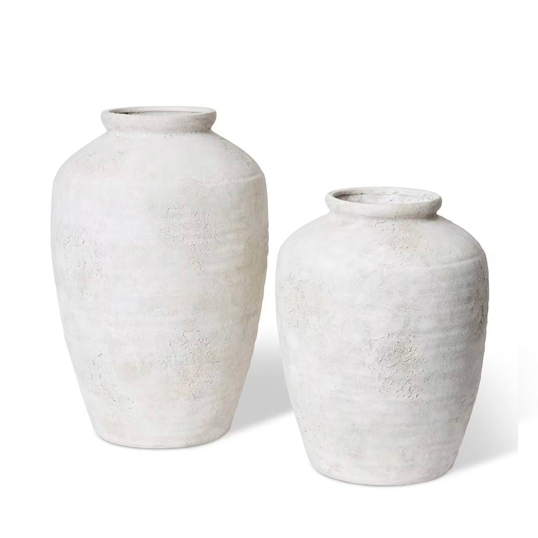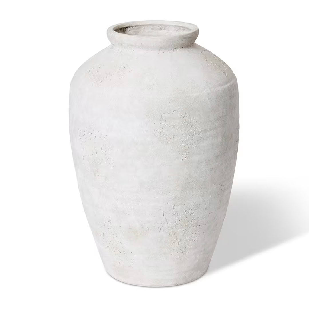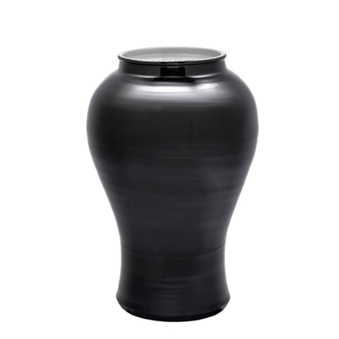 Smooth grey ceramic vaseElegant table lamps and vases on woven console