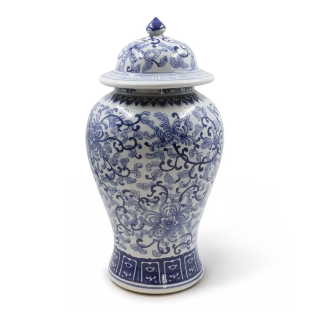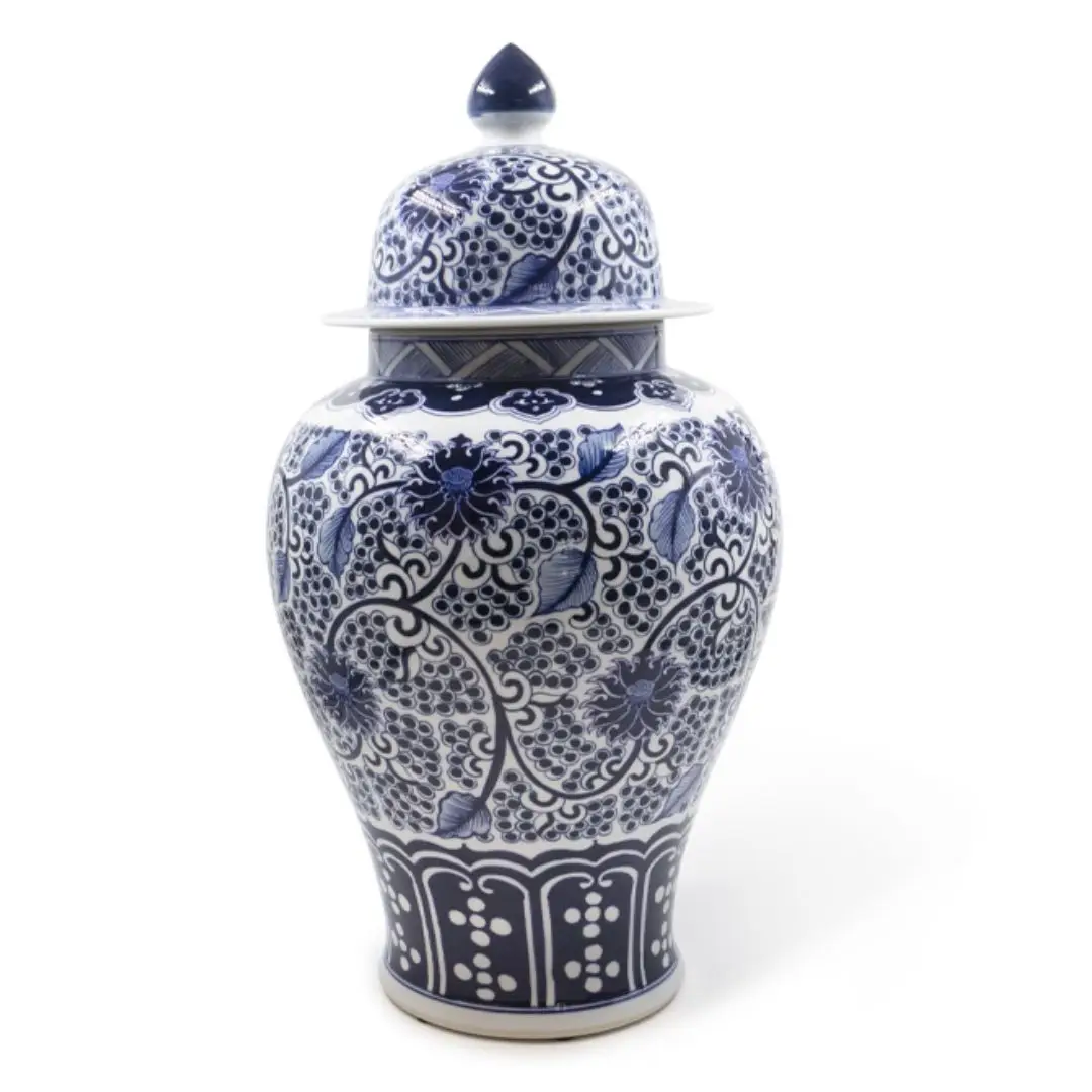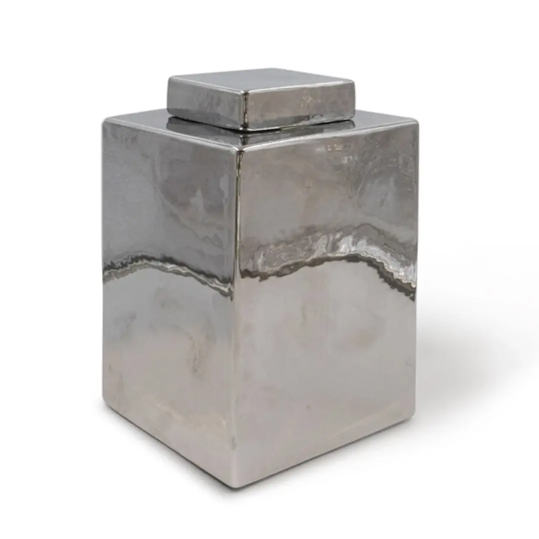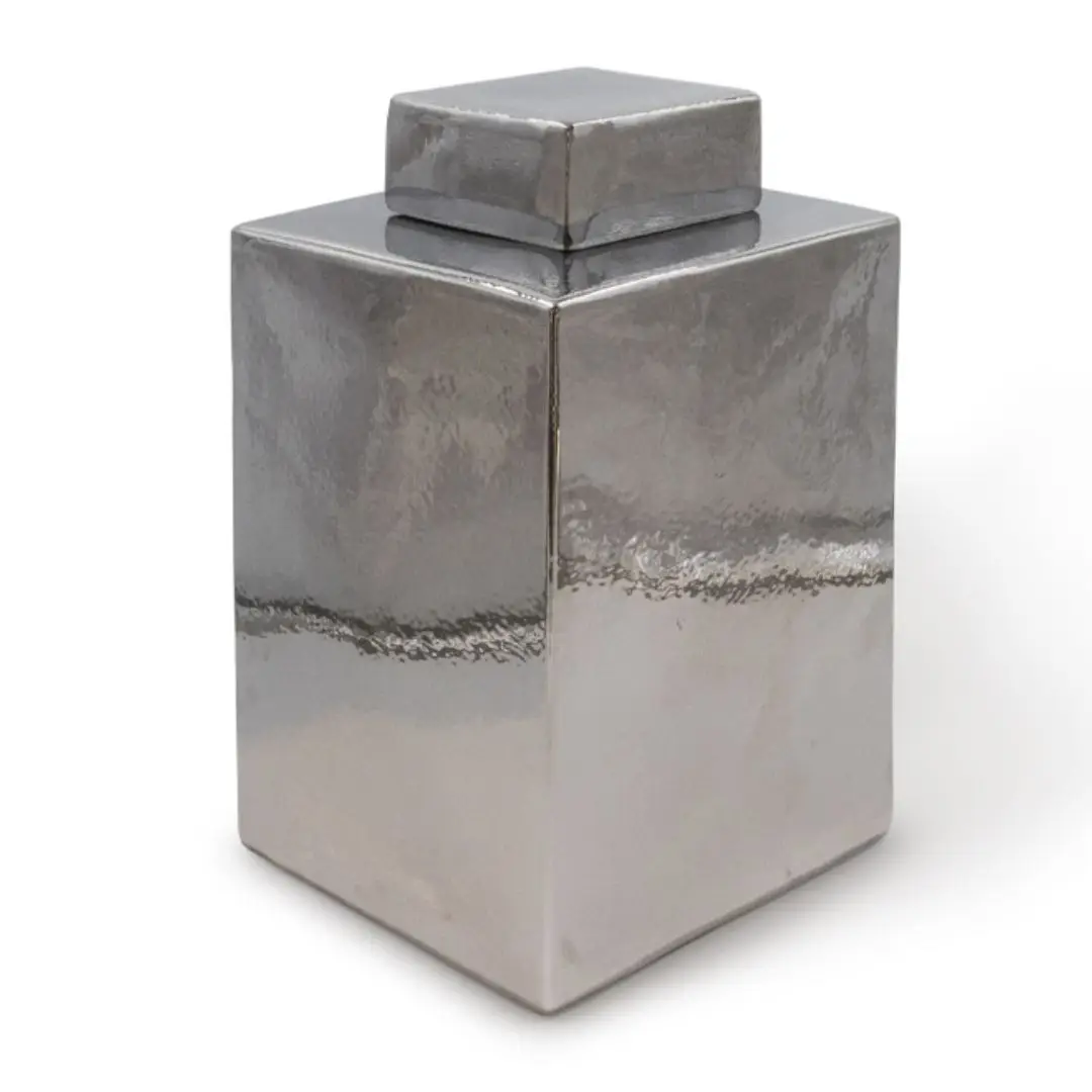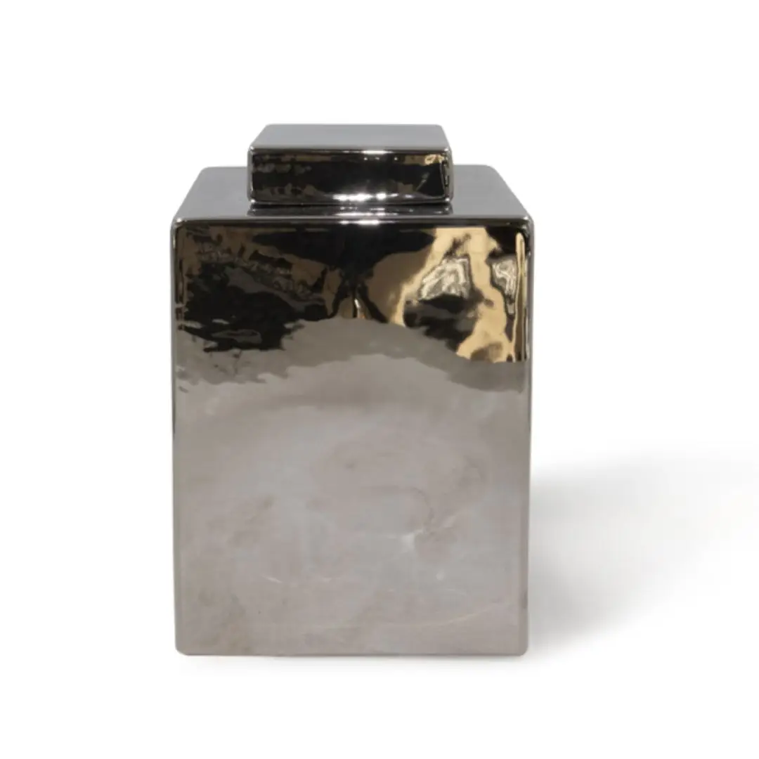 Smooth grey ceramic vaseElegant table lamps and vases on woven console