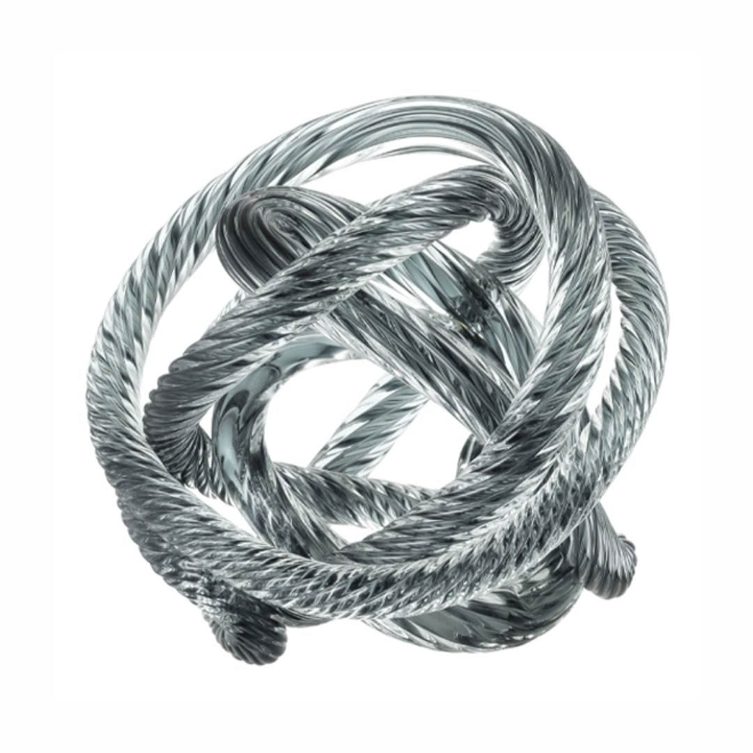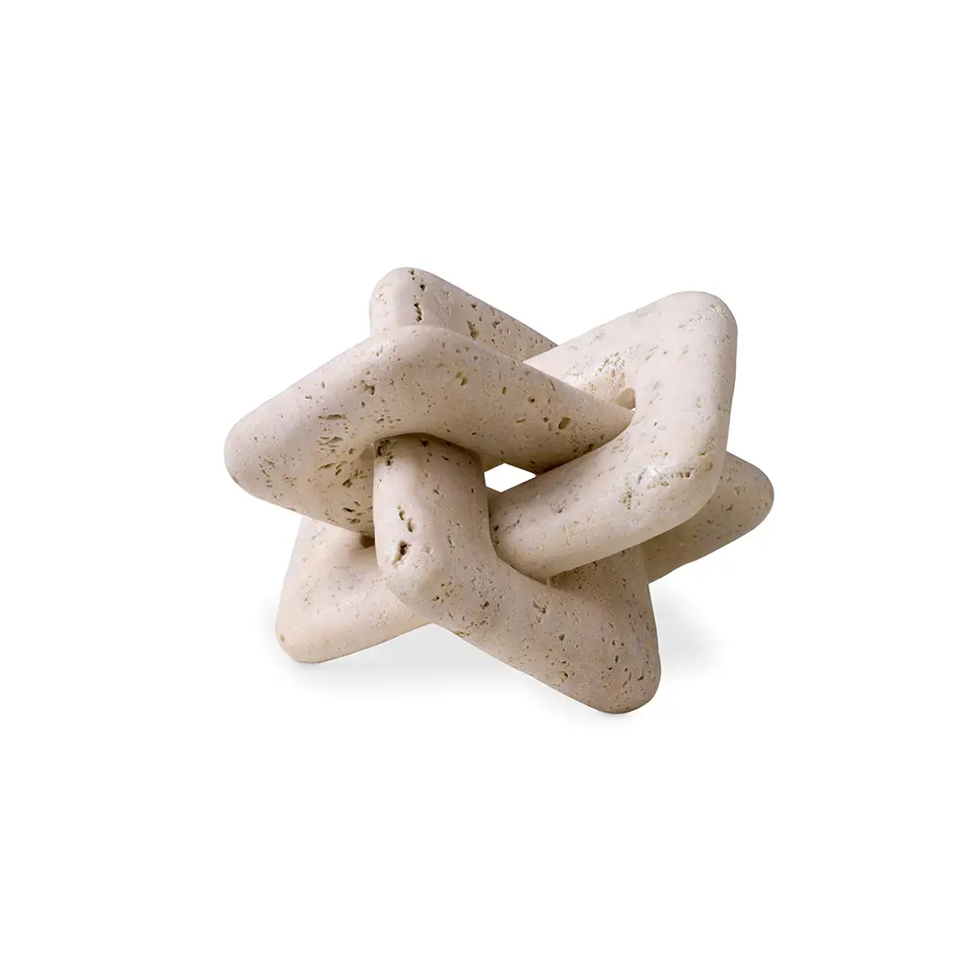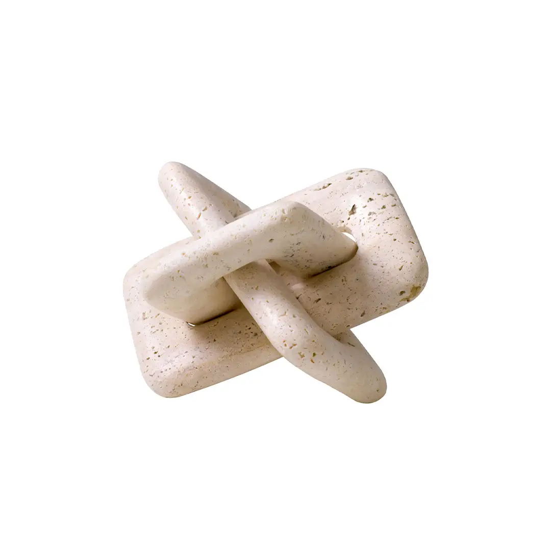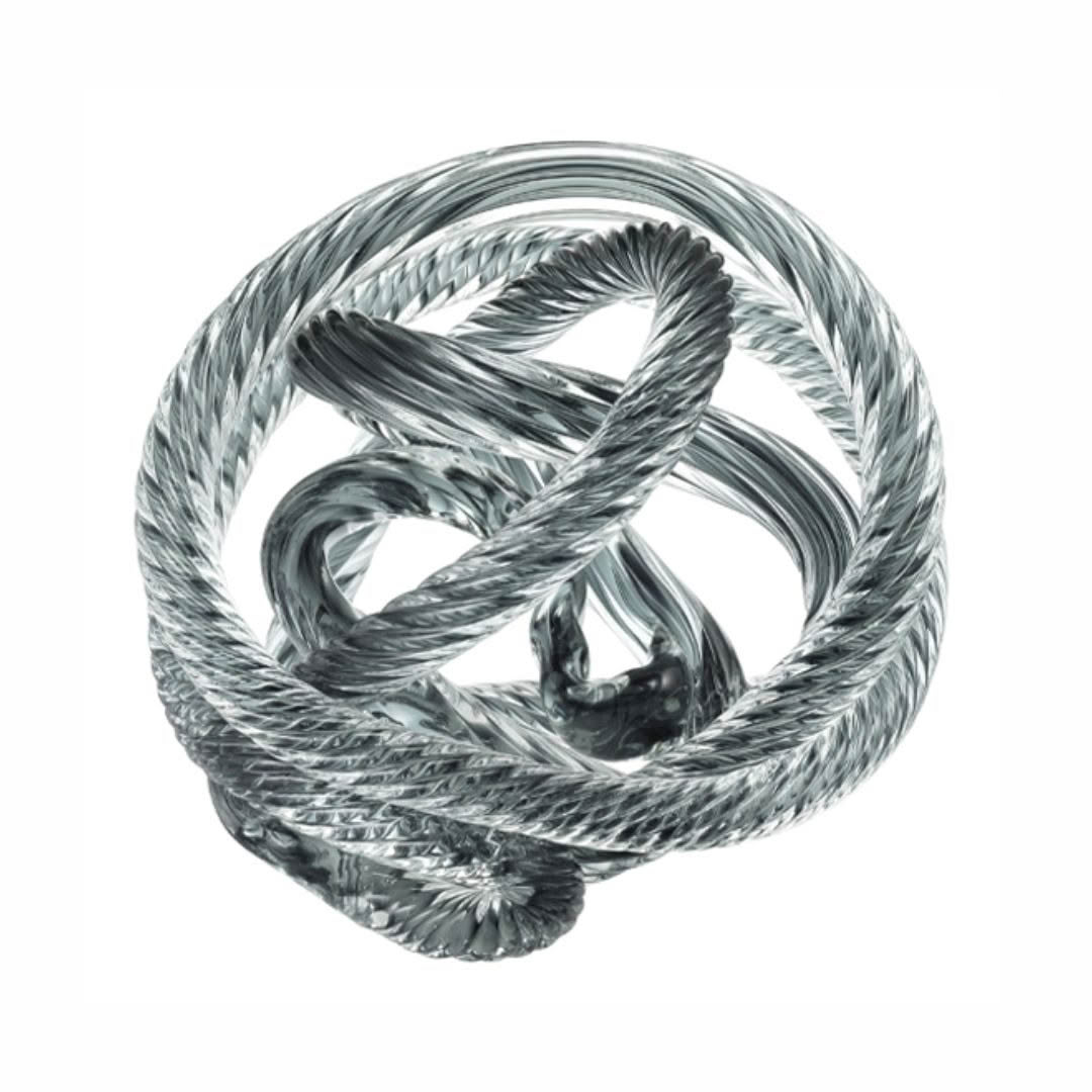 Interlocked silver metallic decorative bands on whiteSilver abstract sculpture on a book about architecture.