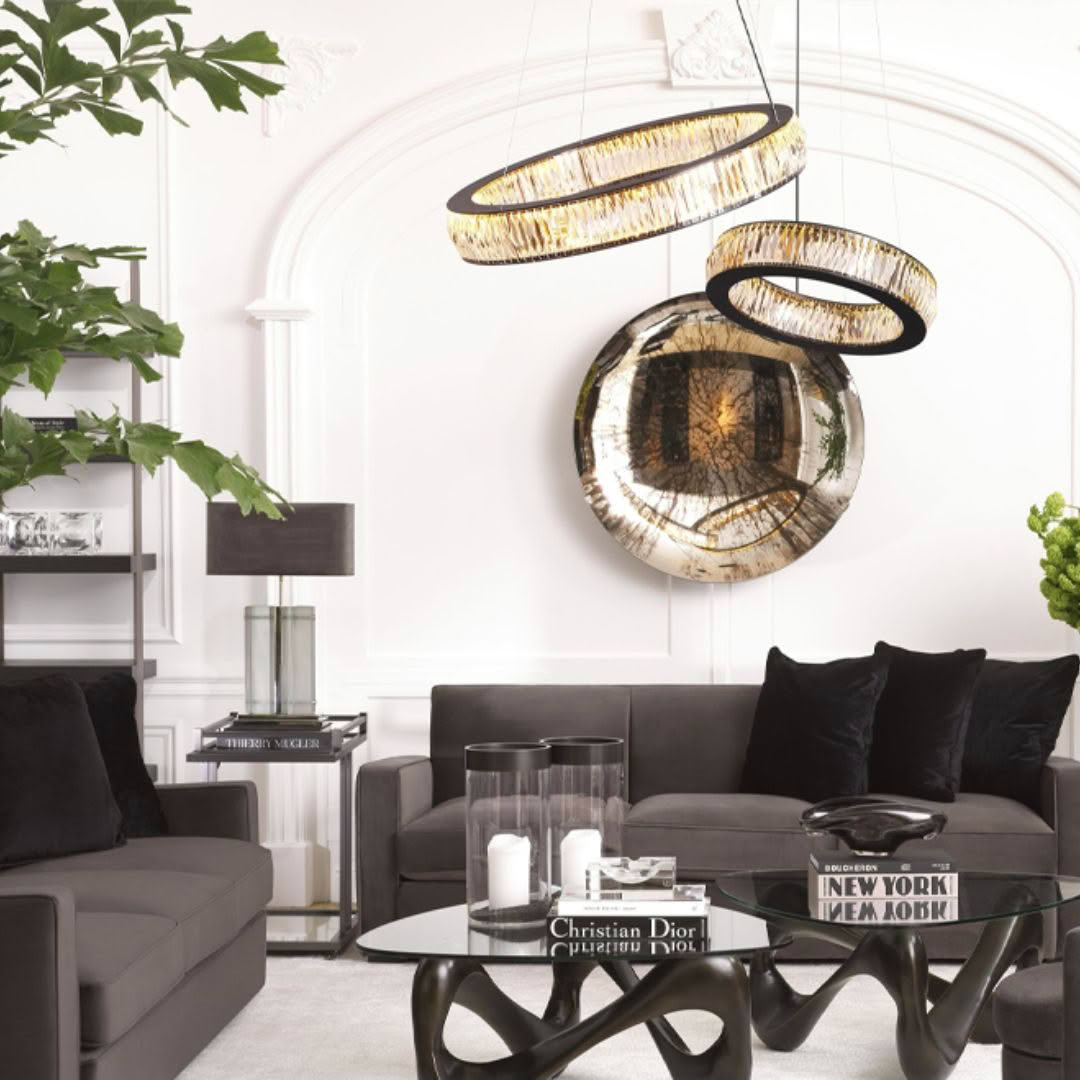 Black ceramic bowl on white backgroundCozy living room with decorative black bowls on table