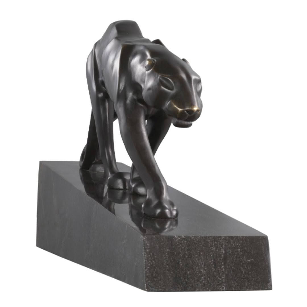 Black wooden carved hippopotamus sculptureBronze hippopotamus sculptures on dark cabinet