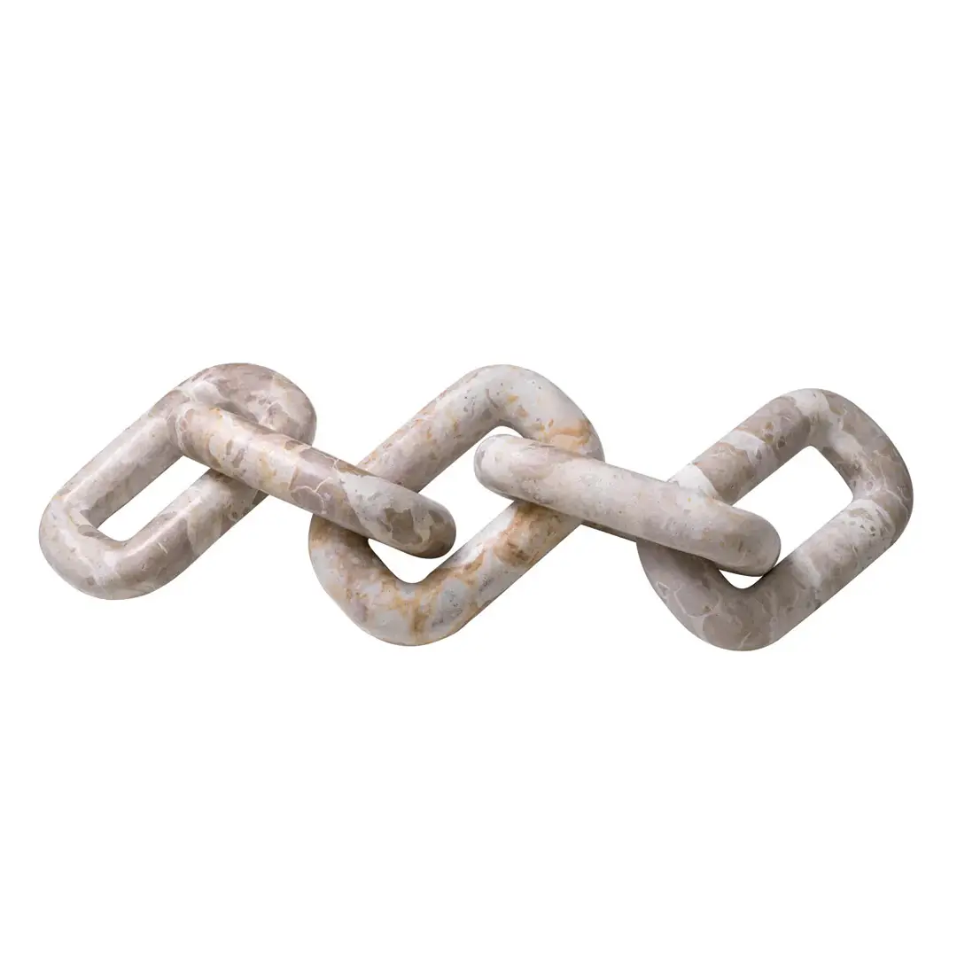 Golden intertwined sculptural metal bands on white.Interlocking golden metallic sculpture on white