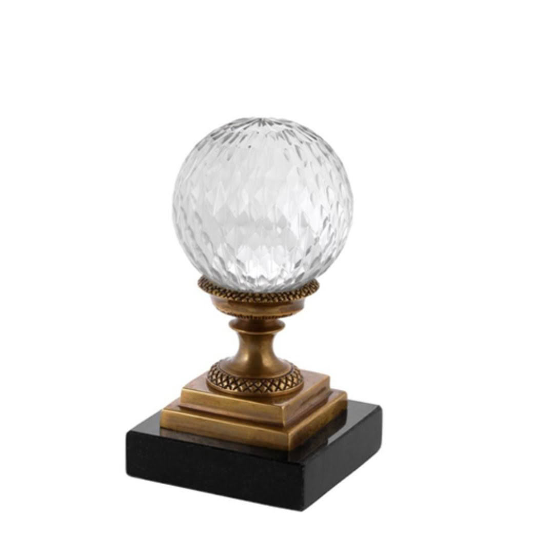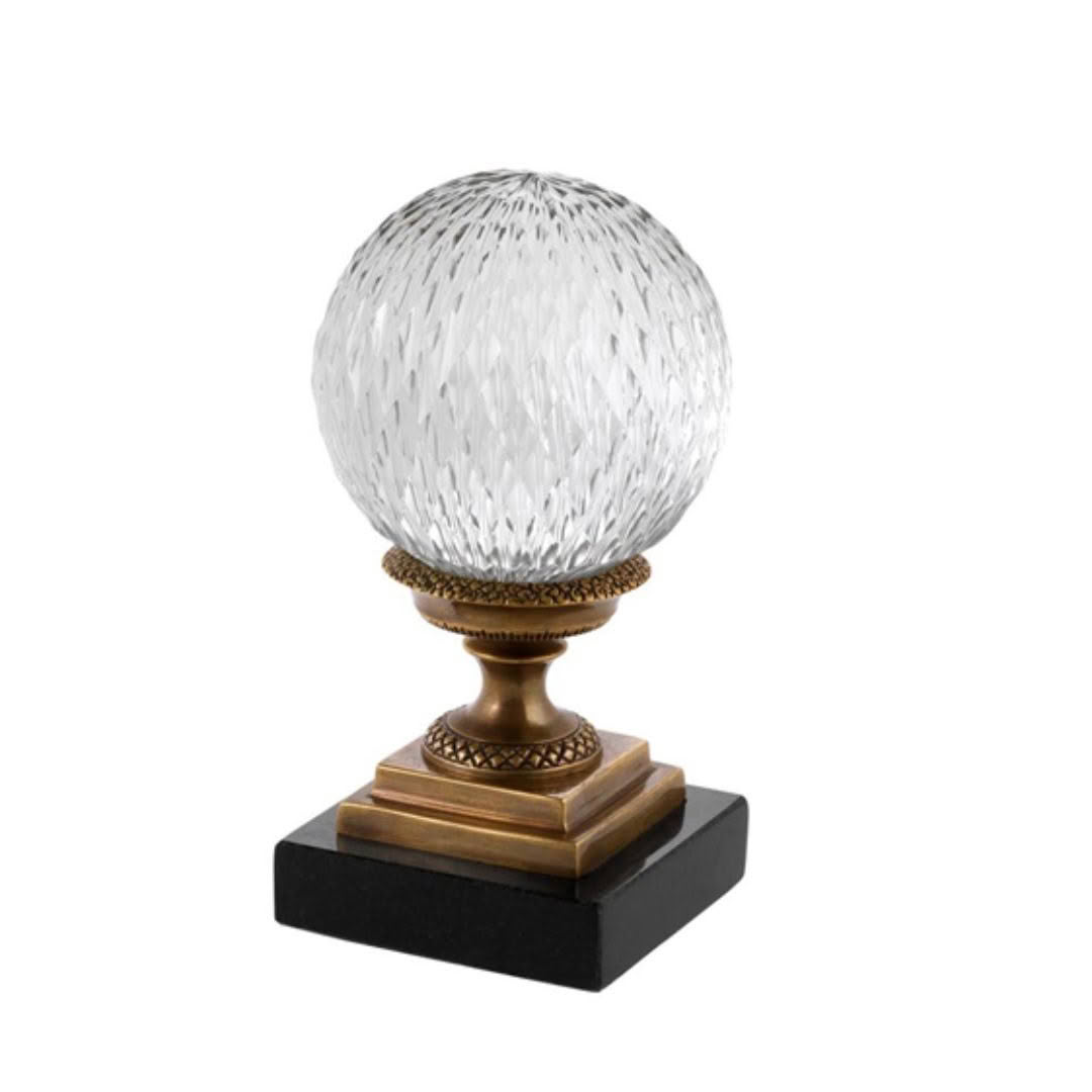 Channel classic style into your home with this gorgeous 3-piece set of Divani Objects on nickel pedestals with a granite base. Crafted from hand blown clear glass, each globe features intricate details that provide textural dimension and shimmering.