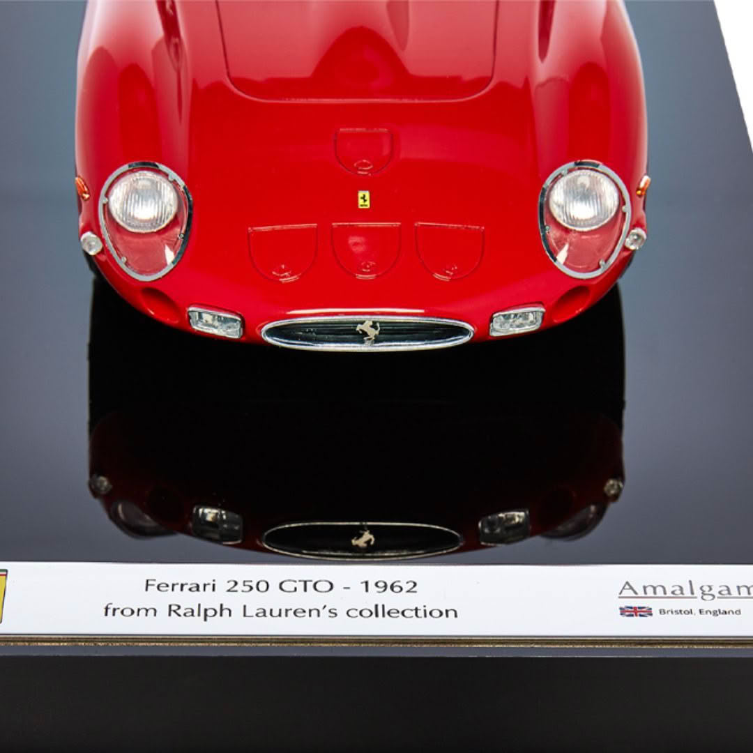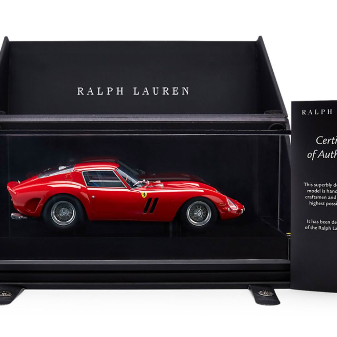 The Ferrari 250 GTO epitomizes the Gran Turismo automobile of the ’50s and ’60s. Designed to operate at high speeds over long distances, it was the perfect balance of race car and road car. With an epoch-making design to match its unique performance, the 250 GTO has been called the greatest Ferrari of all time. Every detail of Mr. Lauren’s personal vehicle has undergone a detailed scan to produce this exact 1:18 scale replica, which is hand-constructed by the British company Amalgam.