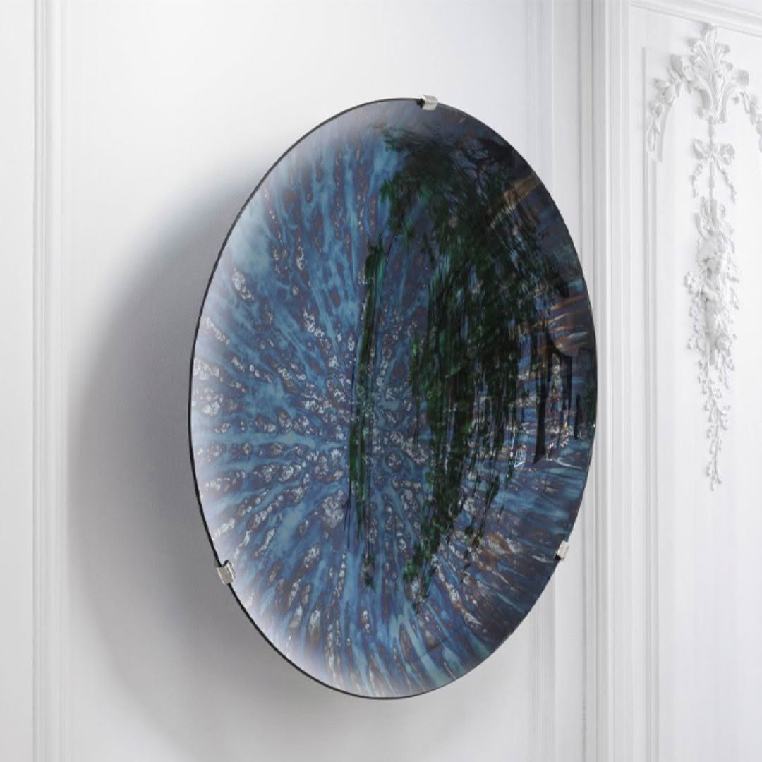 In size somewhat comparable to large satellite dishes, the captivating Laguna Wall Object can not escape one’s attention. This concave mirror glass wall decoration in antique gold is handmade by skilled artisans. It owes its artsy appearance to a traditional technique that generates a different end result each time. Therefore each wall object has a unique look. Mount it to the wall with the supplied hanging system.