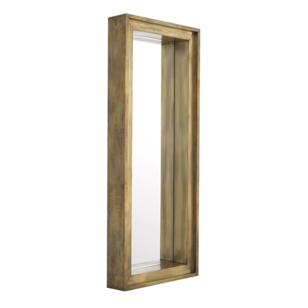 Consider the rectangular Magenta Mirror for a finishing touch in your bedroom or entryway. The deepened frame of this bevelled wall mirror comes in a vintage brass finish, making this item ideal for minimalist spaces or as a quiet anchorpiece in more bold interiors.