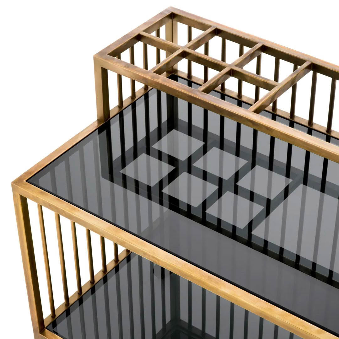 Its vintage brass finish adds a touch of antique allure, while the smoked glass creates a hint of mystique. Perfect for serving drinks or displaying treasured items, the Trolley Rutherford becomes a stylish centerpiece that elevates any space with its distinctive blend of old-world charm and modern allure.