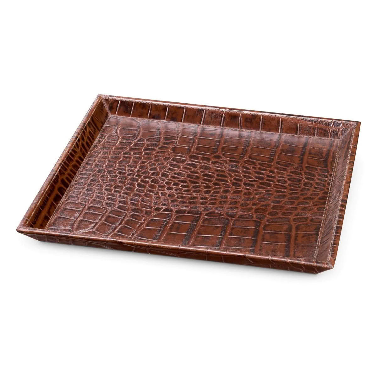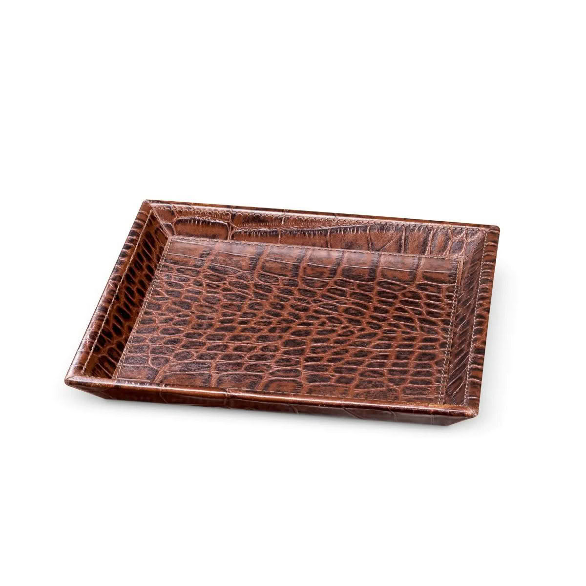Add a touch of sophistication to your workspace with the Scaleo Desk Tray. This set of two trays is crafted from brown leather with a distinctive croco embossed pattern, offering a stylish solution for organizing your desk essentials. Available in both antique brown and black leather, these trays bring a refined, functional element to any desk or office space.