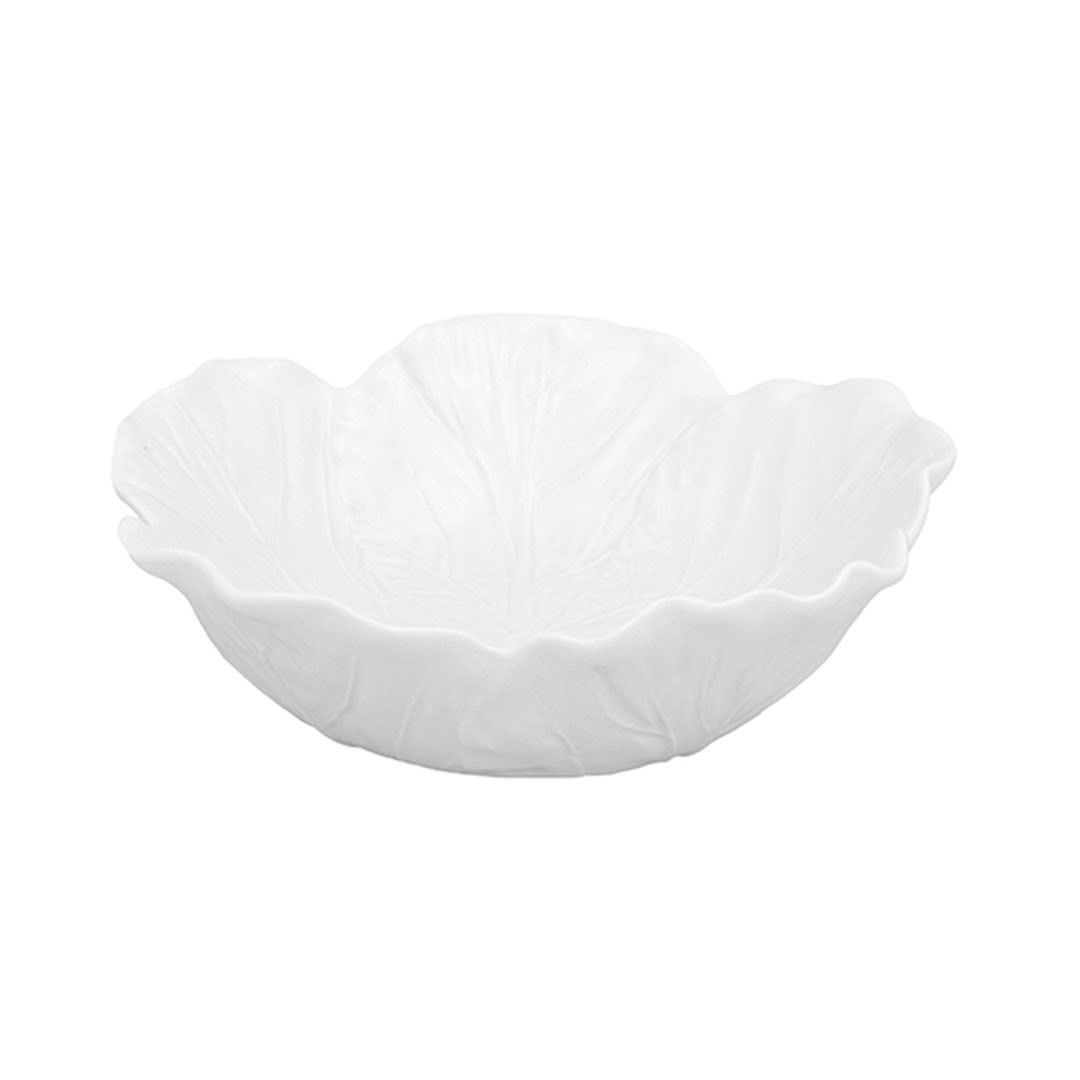 White ceramic leaf-shaped decorative plateCabbage-shaped plates on wooden outdoor dining table