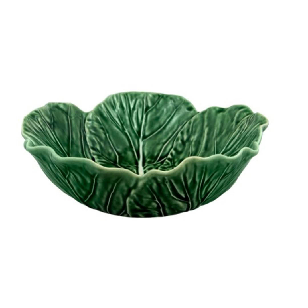Green ceramic leaf-shaped decorative bowlLeaf-themed dinnerware set on kitchen table