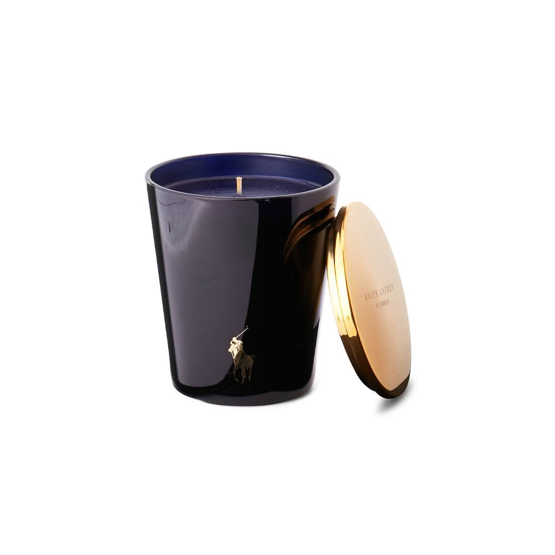 Presented in Ralph Lauren’s iconic navy-and-gold palette, this soy-wax candle blends smoky bergamot, leather, fragrant spice, amber, and wood. The gold-tone lid is engraved with our signature logo and can be styled as a plinth beneath the glass vessel.