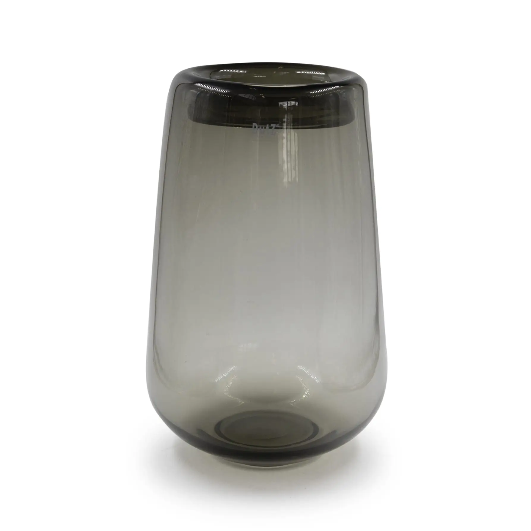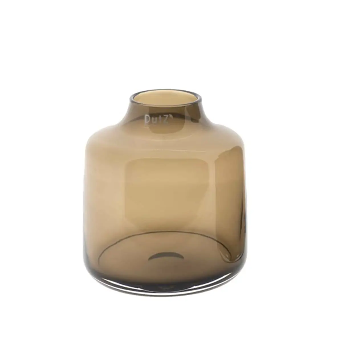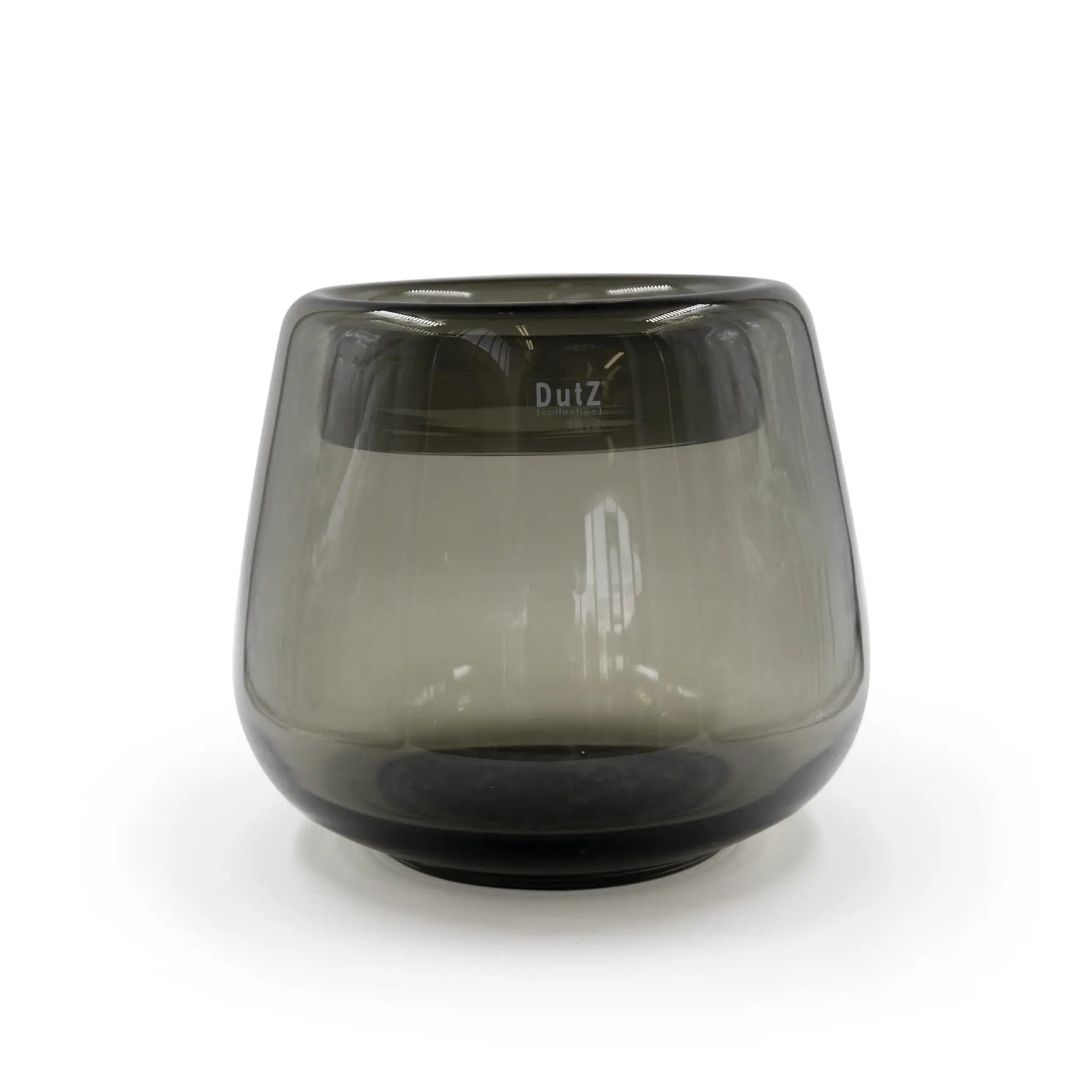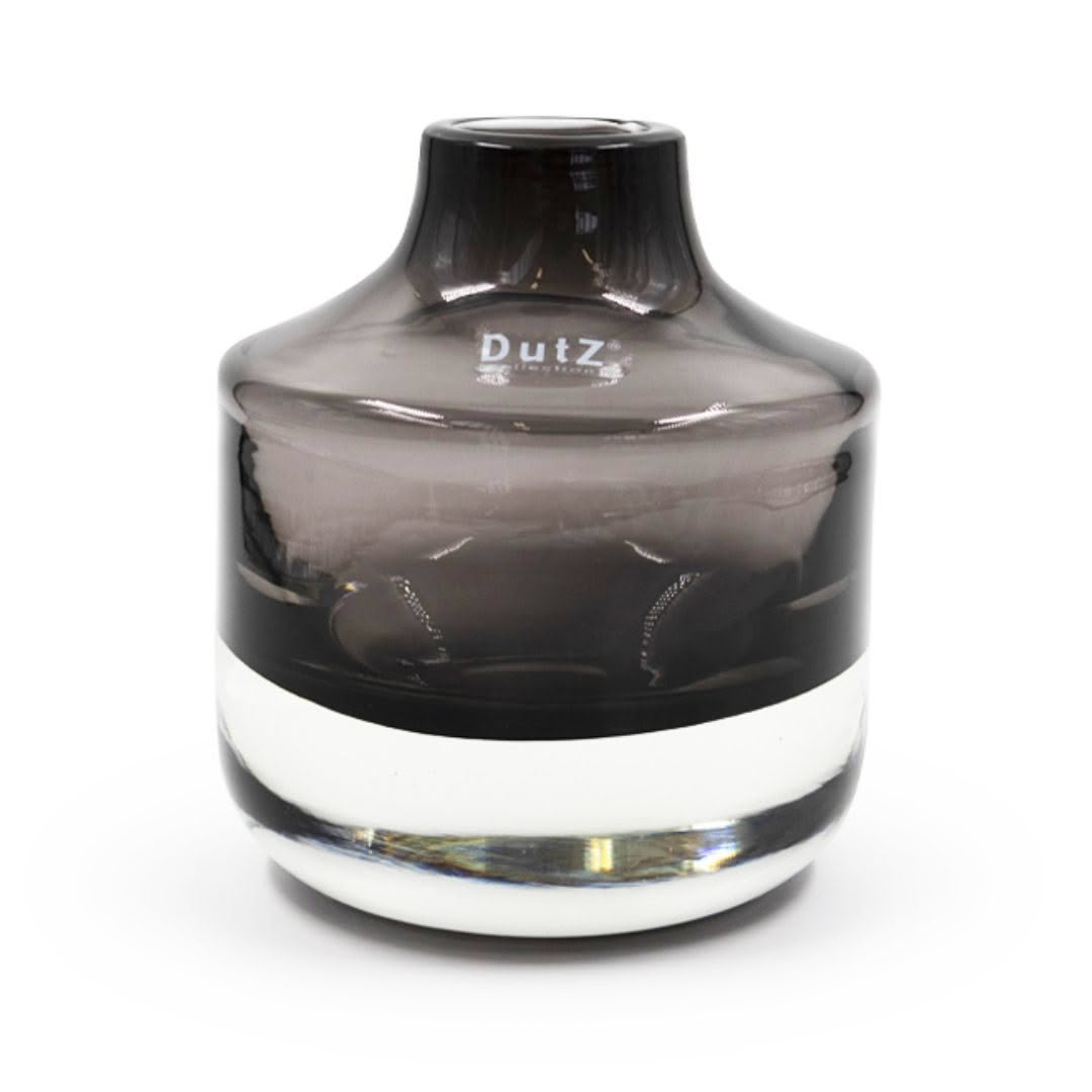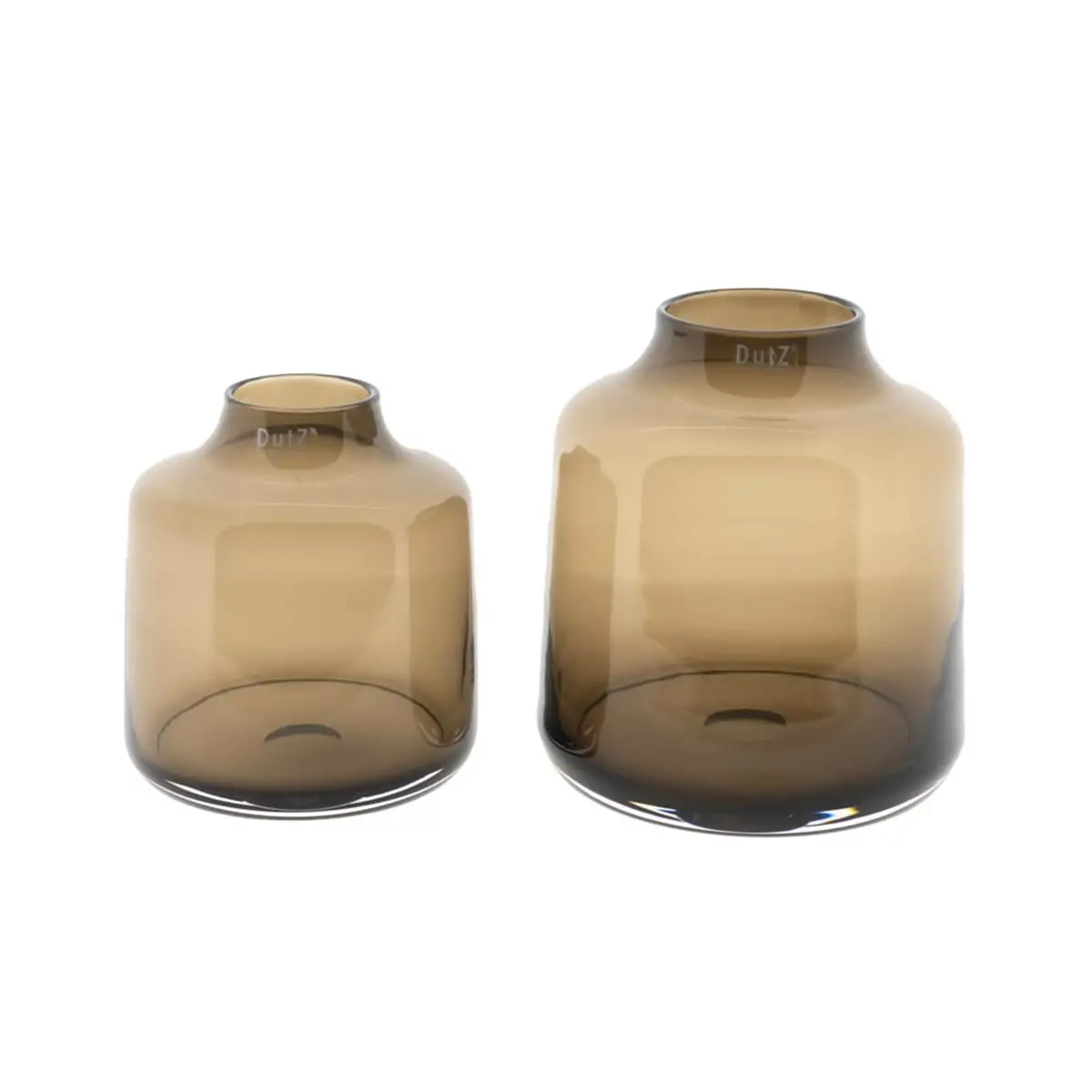Smooth grey ceramic vaseElegant table lamps and vases on woven console