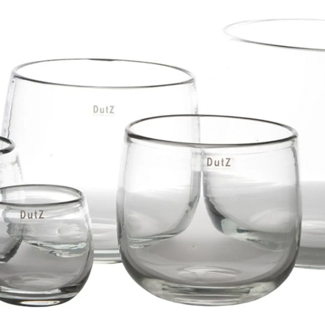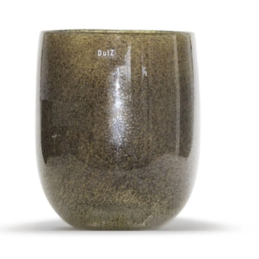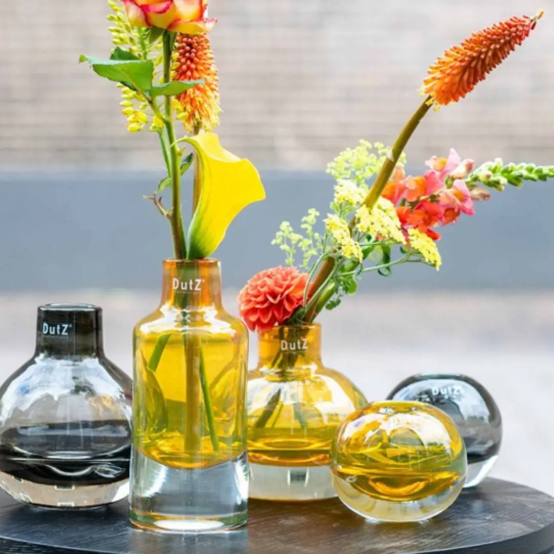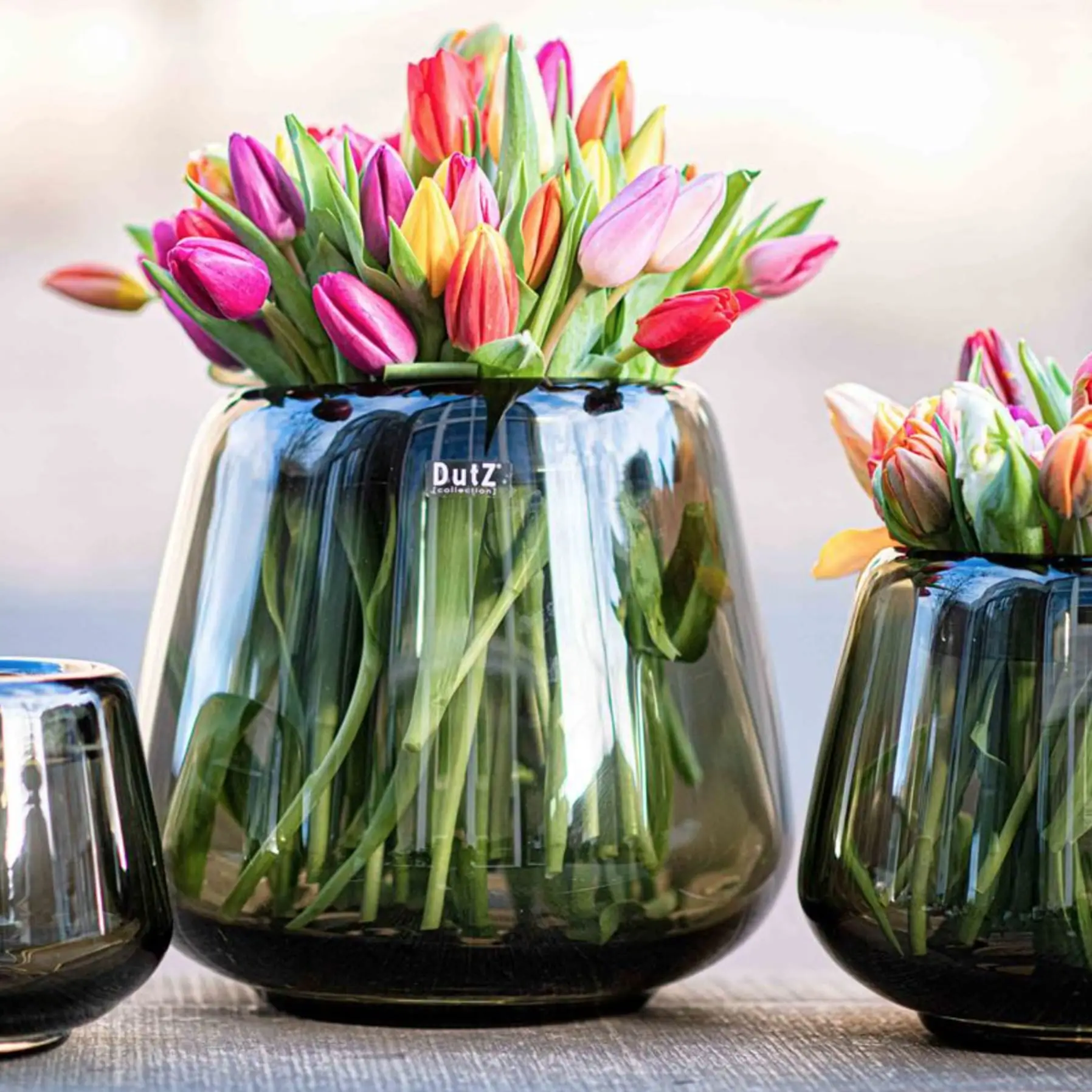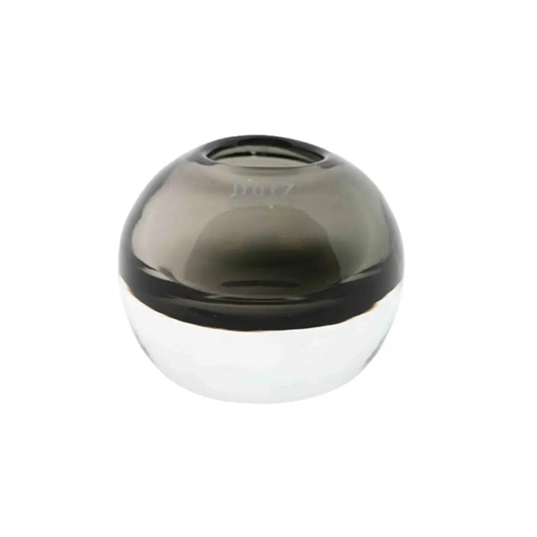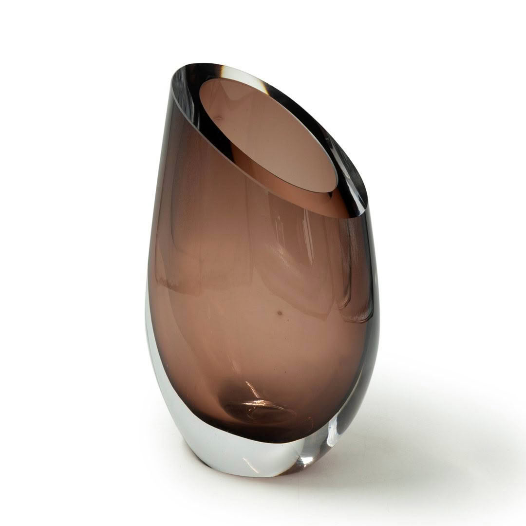 Smooth grey ceramic vaseElegant table lamps and vases on woven console
