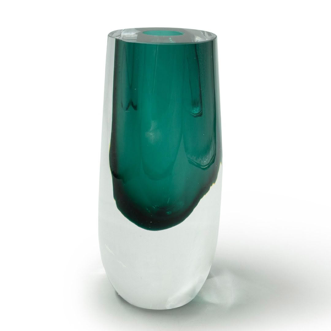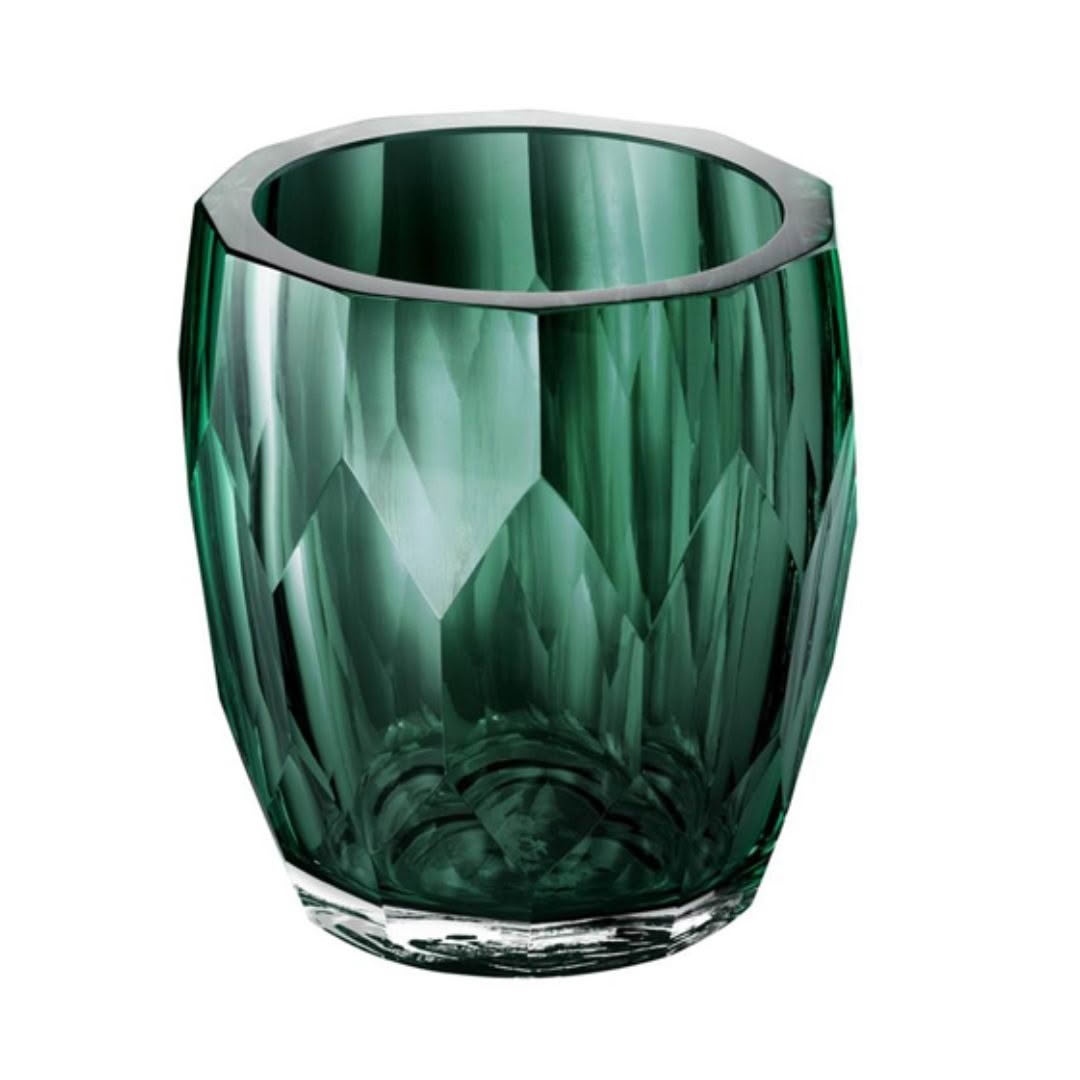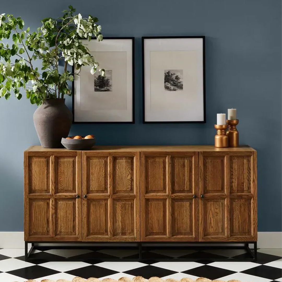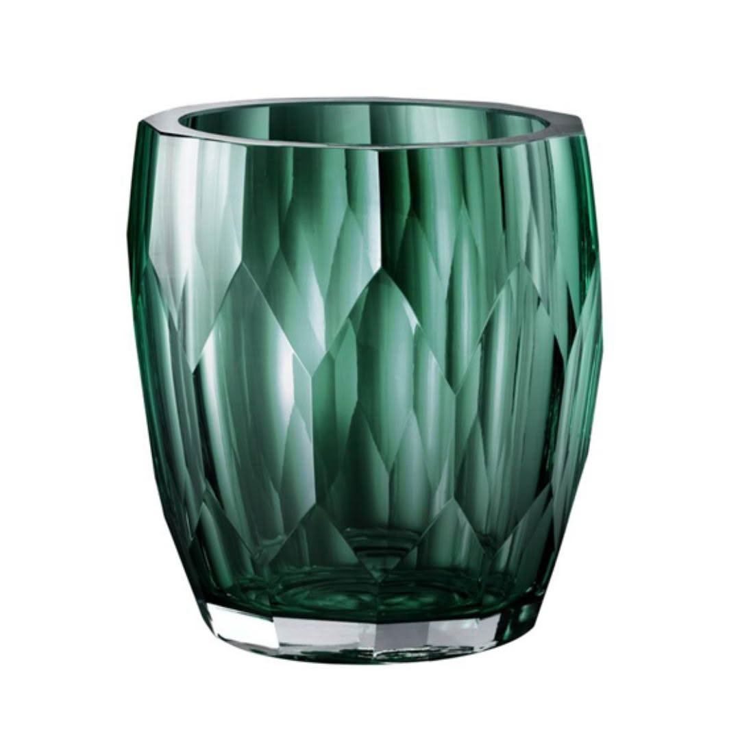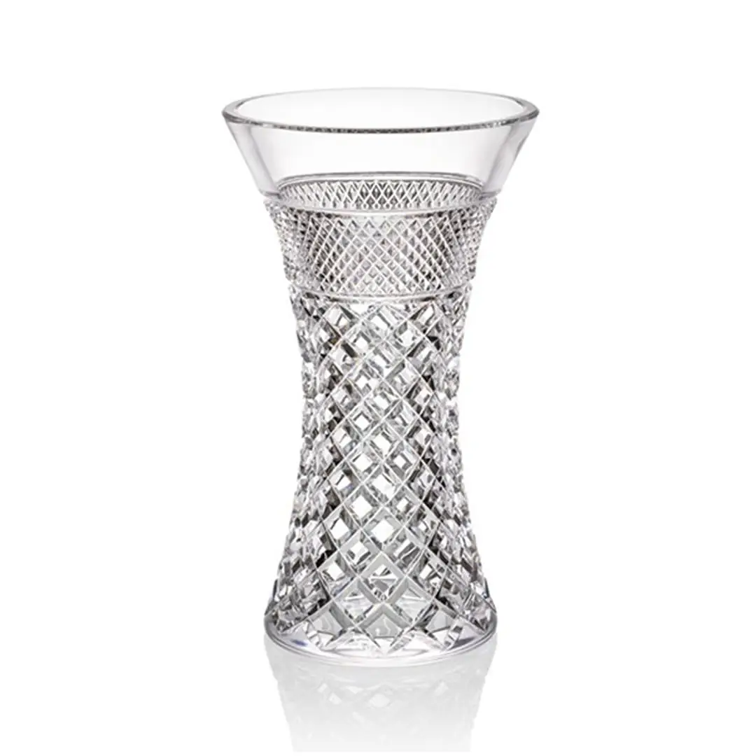 Smooth grey ceramic vaseElegant table lamps and vases on woven console