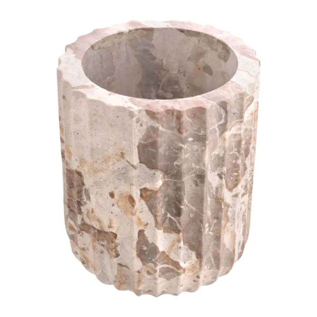 White vertical grooved ceramic vase on plain backgroundClose-up of white fabric rolls