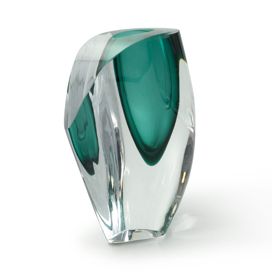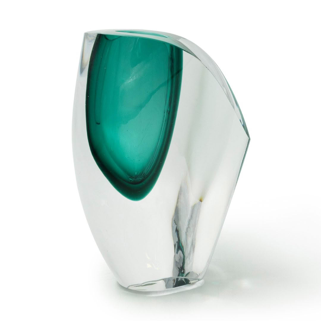 Eucalyptus in decorative white pineapple vase on wooden standWhite ceramic vase with bulbous design holding green leaves