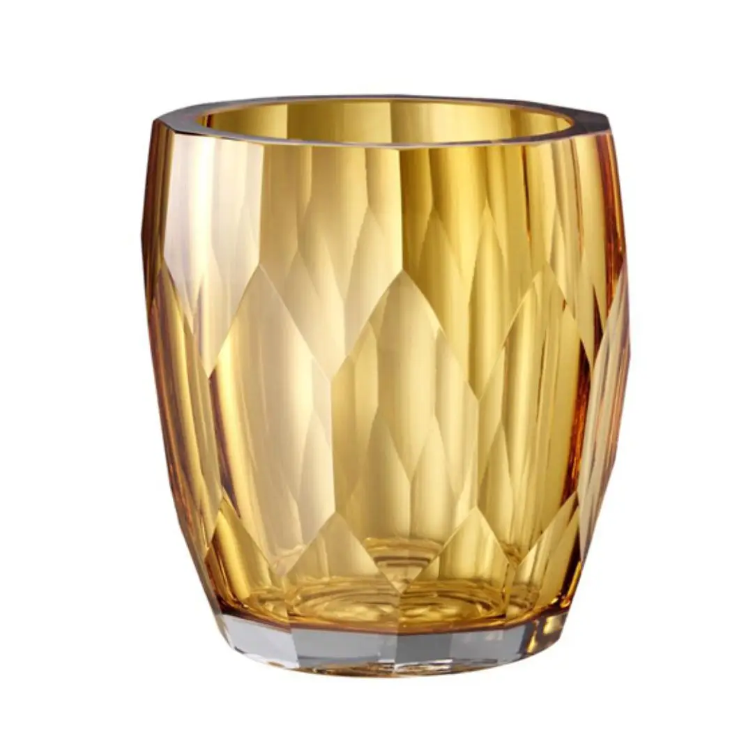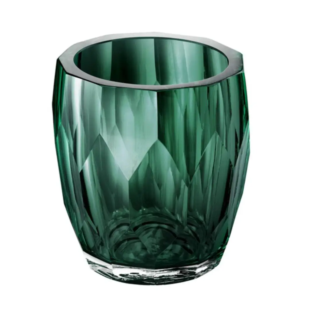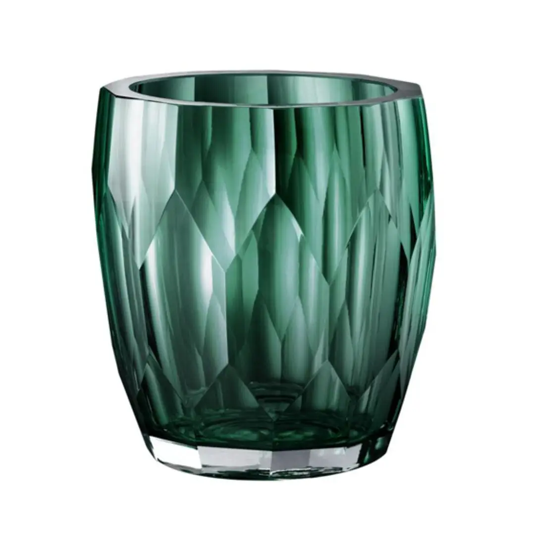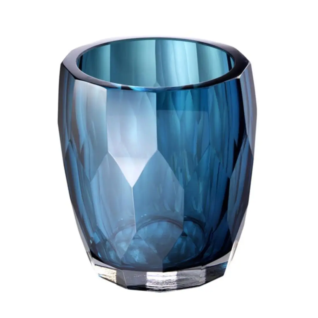 Ideal for all-season arrangements, the blue Marquis Vase offers you a world of decorative options. Its hand-cut glass design with charmingly irregular facets sports a subtle organic style.