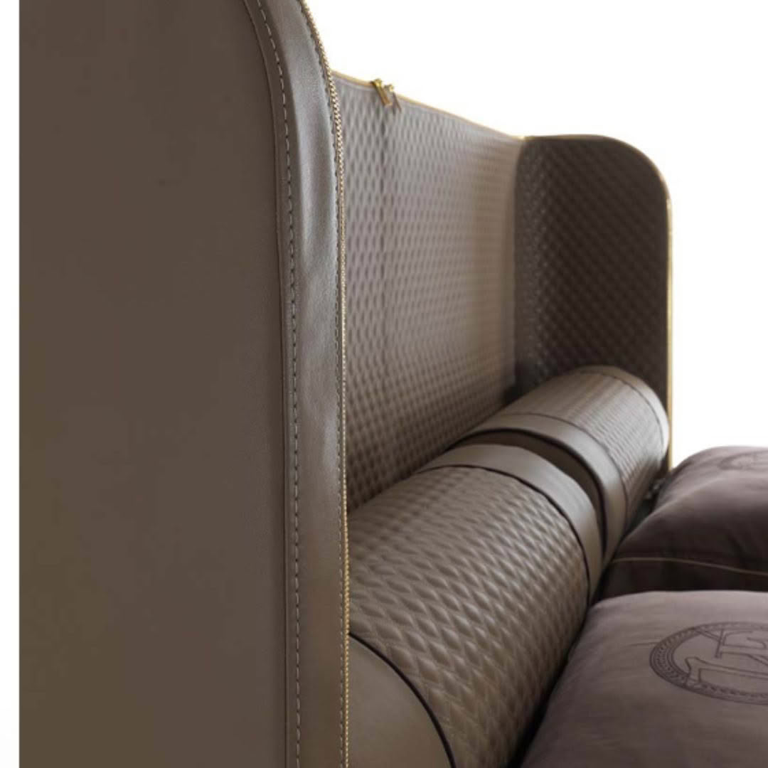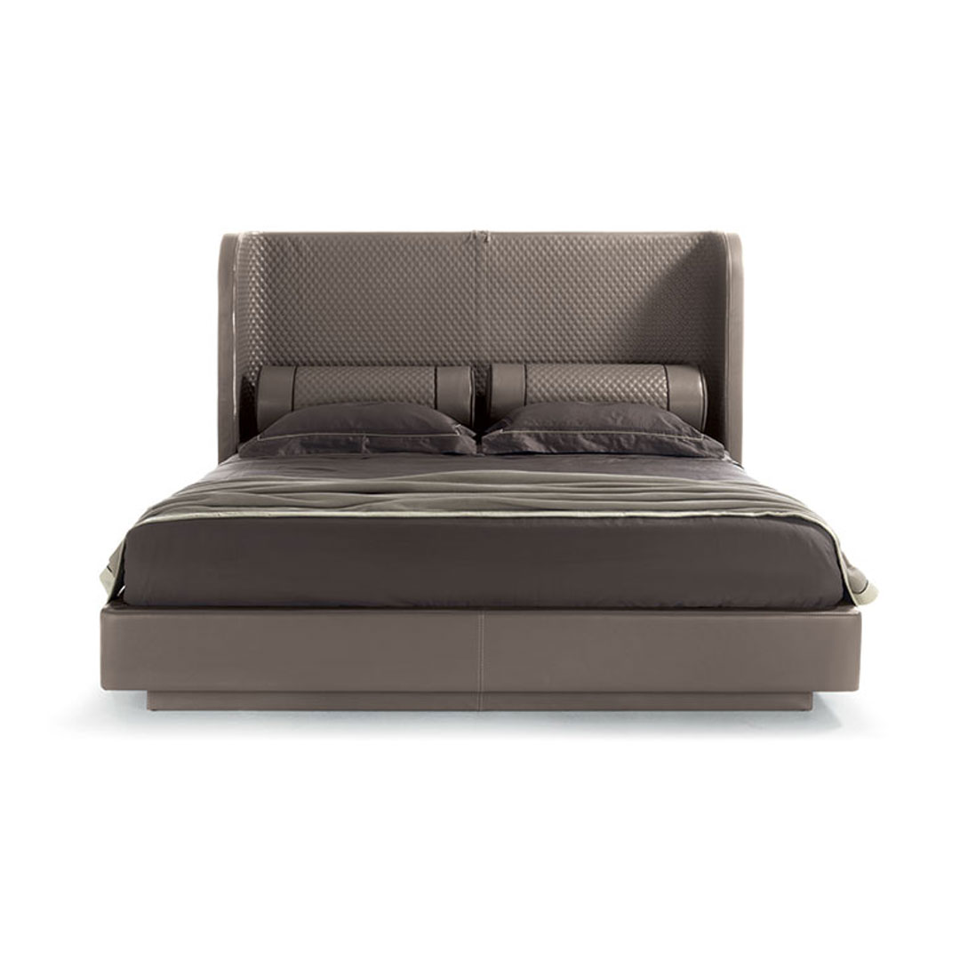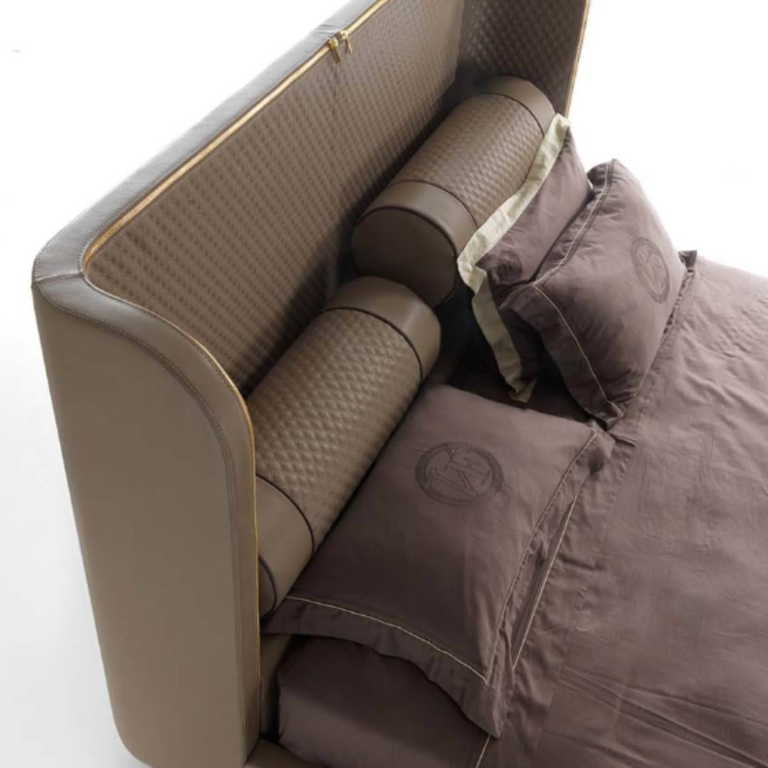 Classicism meet modernity in this bed of smooth and neat lines, enriched by an imposing headboard, elegant embroidery and precious zippers.