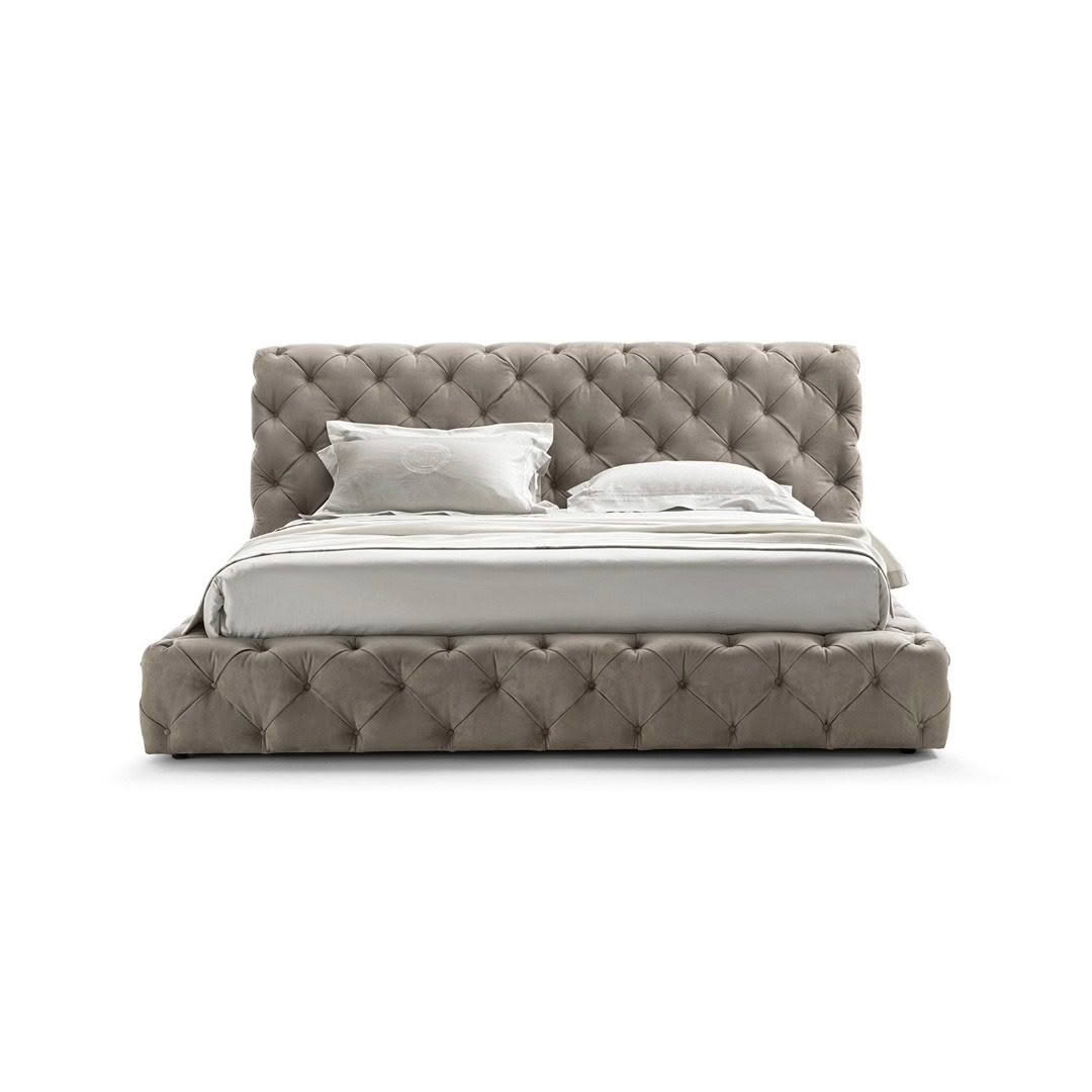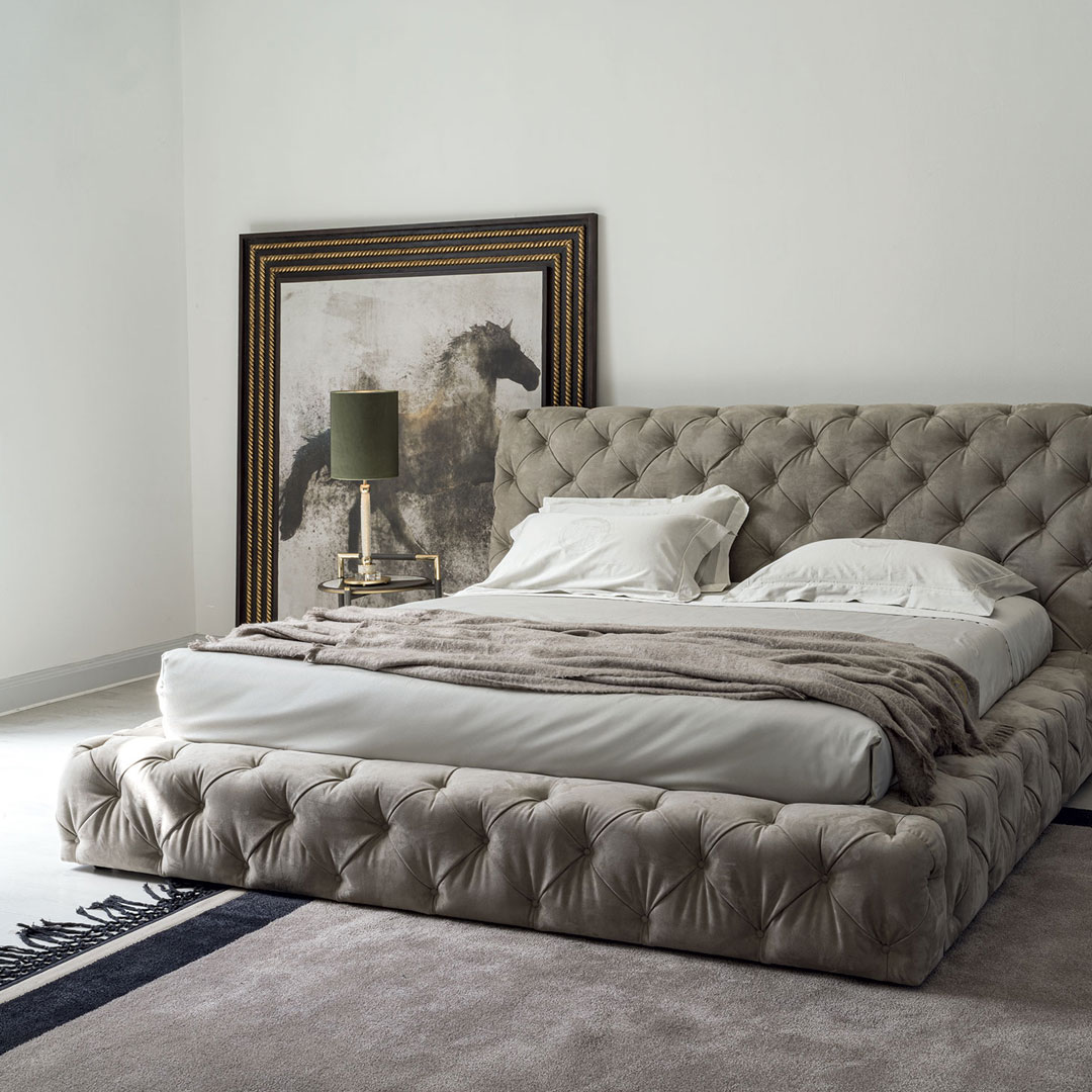 The hand-made capitonné manufacturing brought to its excellence: the Caracciolo bed is a masterpiece of the most exquisite and captivating hand-made manufacturing of the furnishing field having an ancient taste (developed around 1800), yet always up-to-date. The new interpretation of this manufacturing in the Caracciolo bed is highlighted thanks to its squared and linear shapes, which, in a contrast of symmetry, provides a balance to the wavy effect of the capitonné manufacturing.