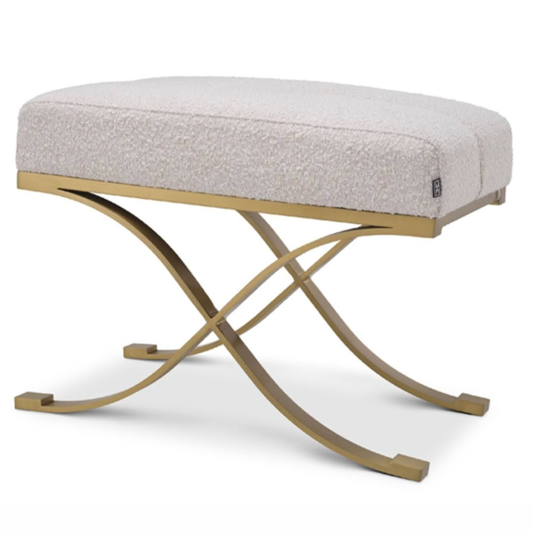 Provided with a brushed brass finish, Stool Adonia is carefully upholstered and presented in bouclé cream for an effortless complement to your design scheme. Its elegant design matches a variety of classic and contemporary interior styles.