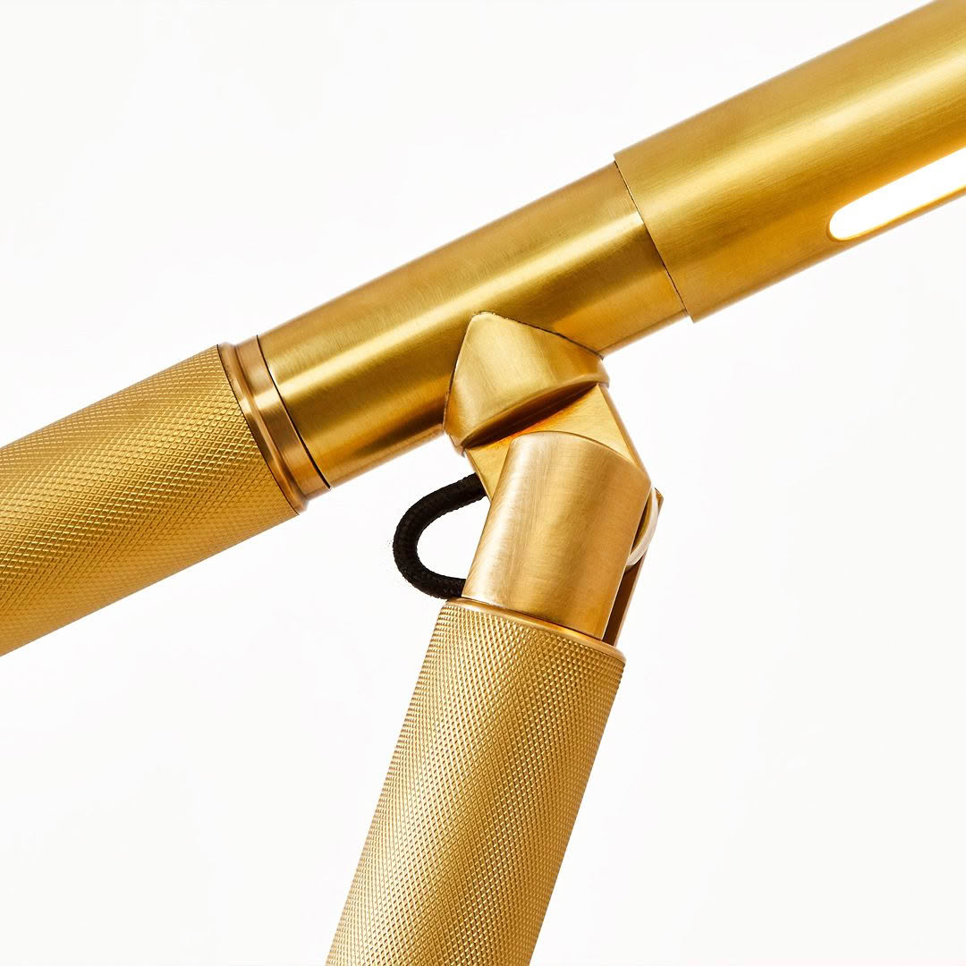 Inspired by the utilitarian textures found in industrial design, the Barrett boom-arm desk light features a knurled, diamond-shaped pattern embossed into the solid brass stem. Equipped with dedicated LED, the contemporary silhouette has a built-in dimmer switch and an adjustable arm, allowing for the precise positioning of light.