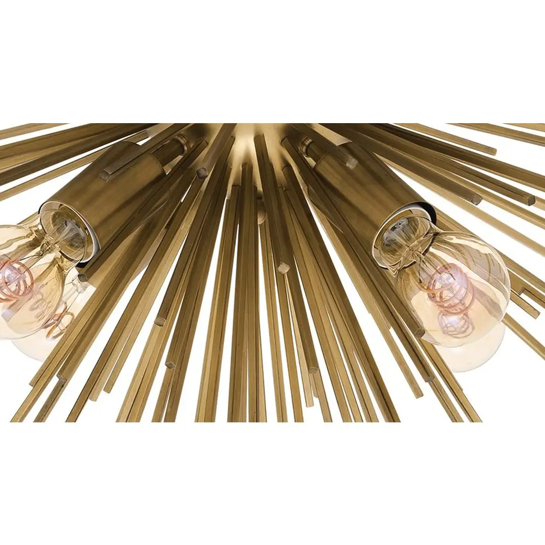 Let the sun shine in with the enchanting Boivin Ceiling Lamp. Like golden sunbeams the uneven rods with matte brass finish reflect the light of the light bulbs beautifully. This brilliant starburst flushmount ceiling lamp will be a radiant centerpiece in your hallway, lounge or bedroom.