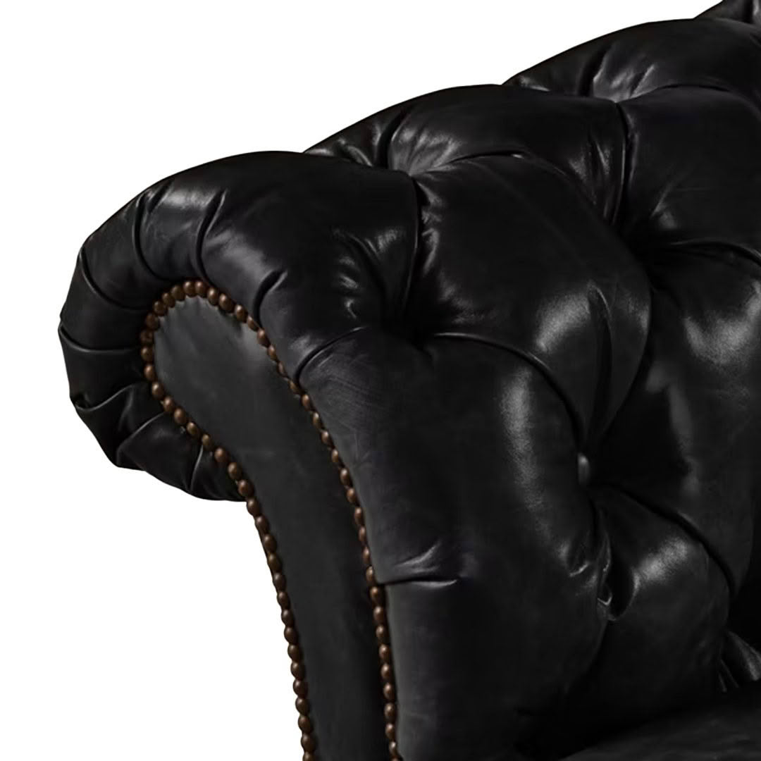 Inspired by the tailored luxury inherent to London’s Savile Row, Ralph Lauren’s Brook Street loveseat is upholstered in natural English cowhide, affording a soft hand and refined appearance. Set upon turned beechwood legs with front-facing casters, the elegant profile showcases a tufted back, scrolling arms, and brass nail-head trim.