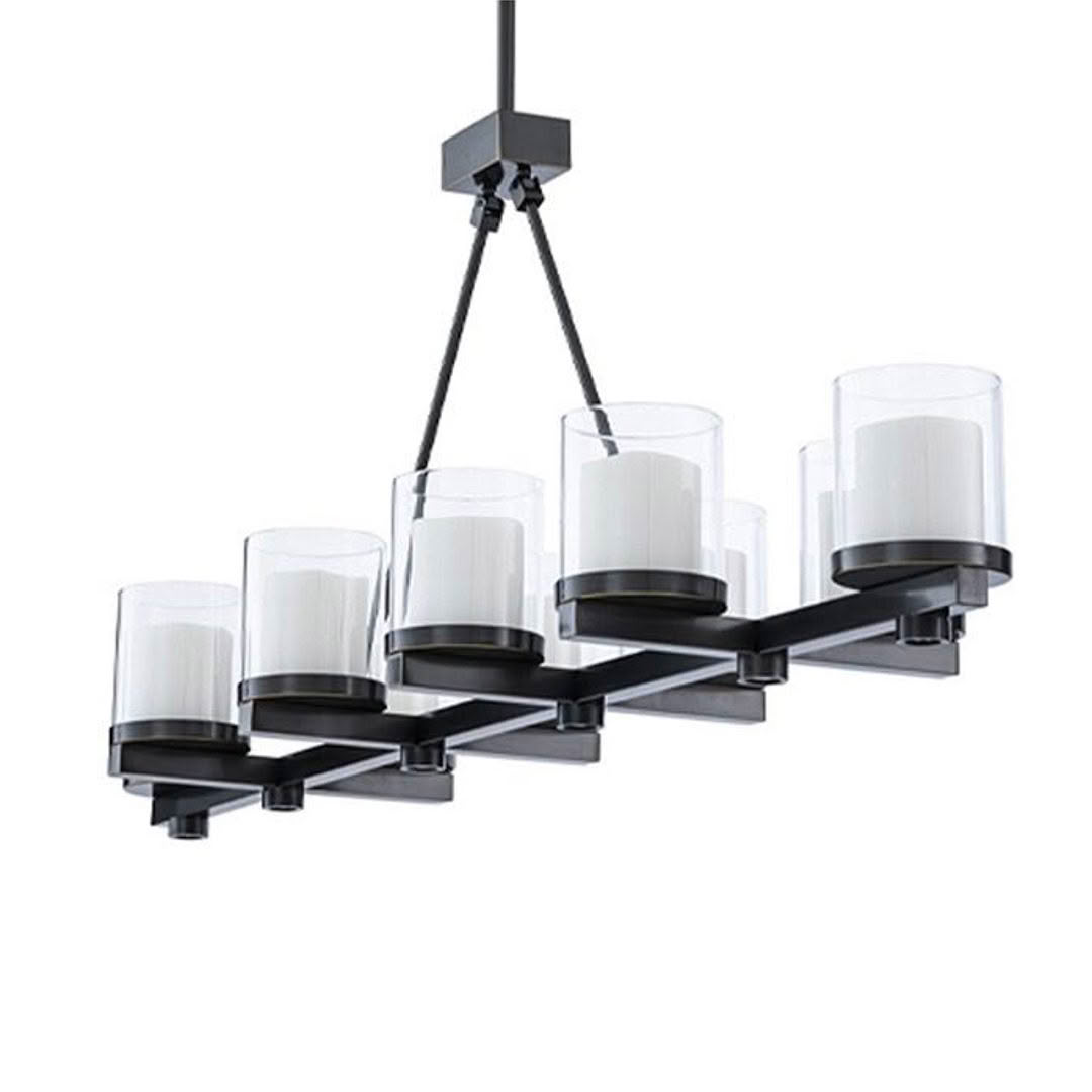 Perfect for hanging over a dining table or kitchen island, Chandelier Donovan pairs a handsome look with functional yet atmospheric lighting. Provided with an antique brass finish, this lovely lamp comes with ten clear glass cylindrical shades including faux candles with LED lights and a remote control.