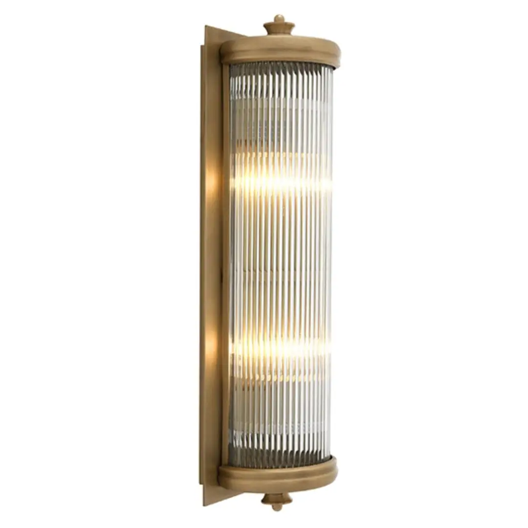 Gold bar cart with glass shelves on wheelsBrass bar cart with glass shelves and caster wheels
