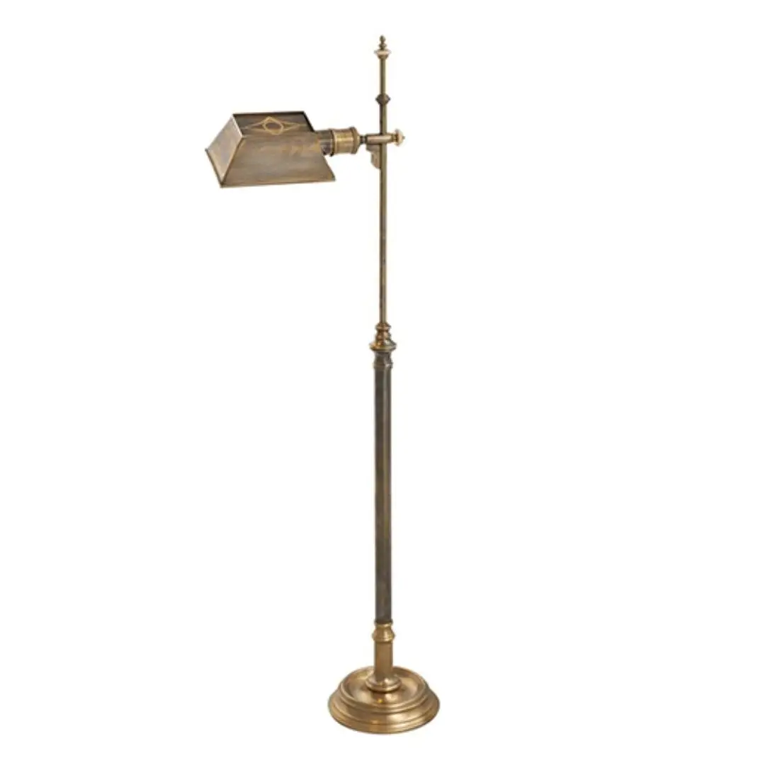 Illuminate your reading nook with the charming Charlene Floor Lamp. This vintage brass pharmacy floor lamp is ideal for positioning beside a chair or sofa to give a little extra reading light, as the shade can be adjusted to direct the light.
