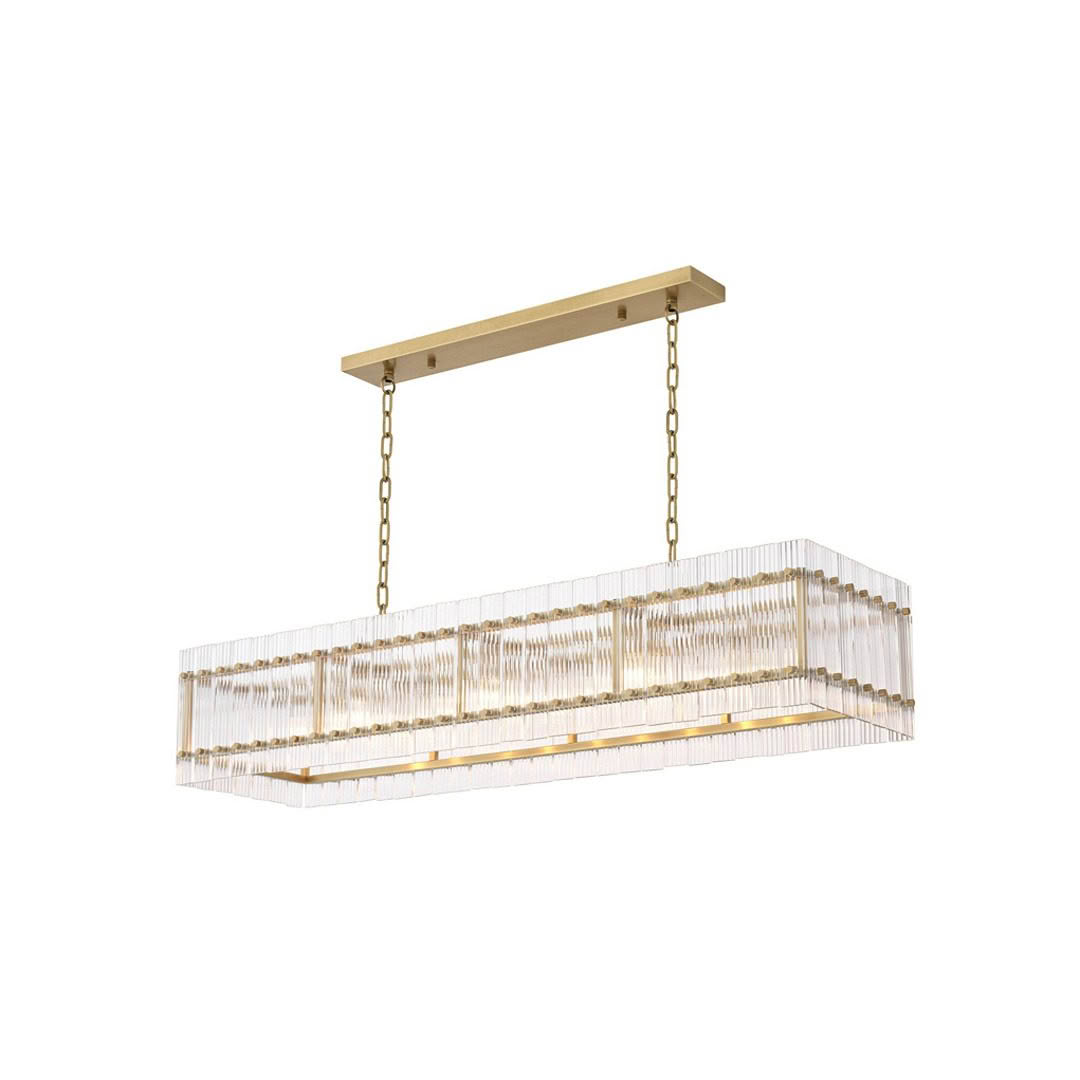 Elegant tiered glass chandelier with golden accentsElegant crystal chandeliers in a stylish living room