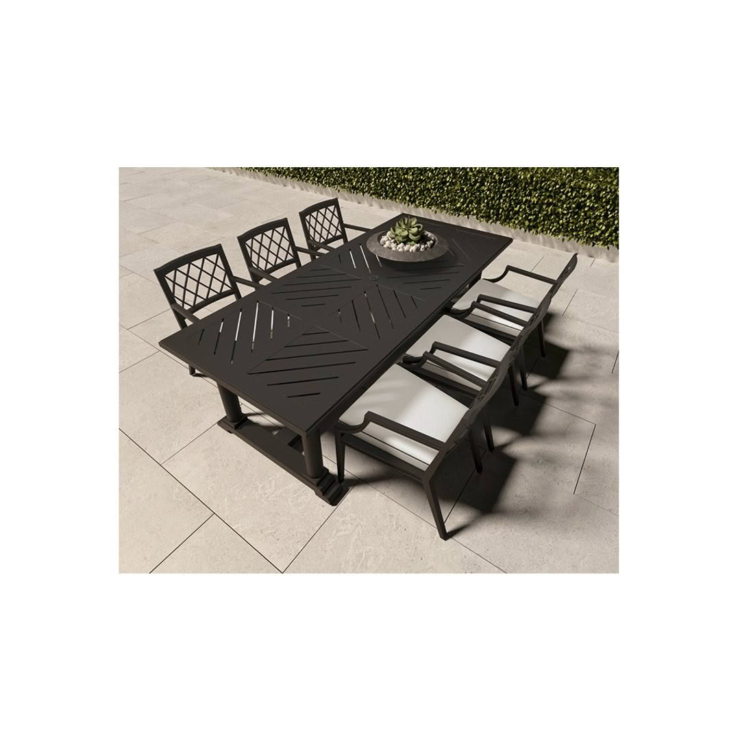 The elegant Paladium Chair with arms is suitable for outdoor and indoor use, and therefore perfect for your conservatory, veranda, patio, balcony or garden. With its sophisticated look and black lacquer frame, this attractive dining chair is sure to be a stylish and practical addition to your outdoor living space. It comes with a comfortable blue seat cushion with piping.