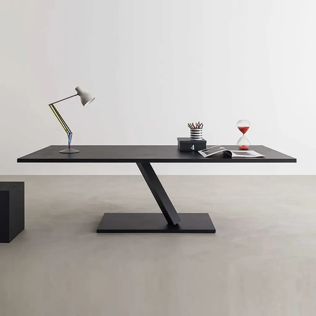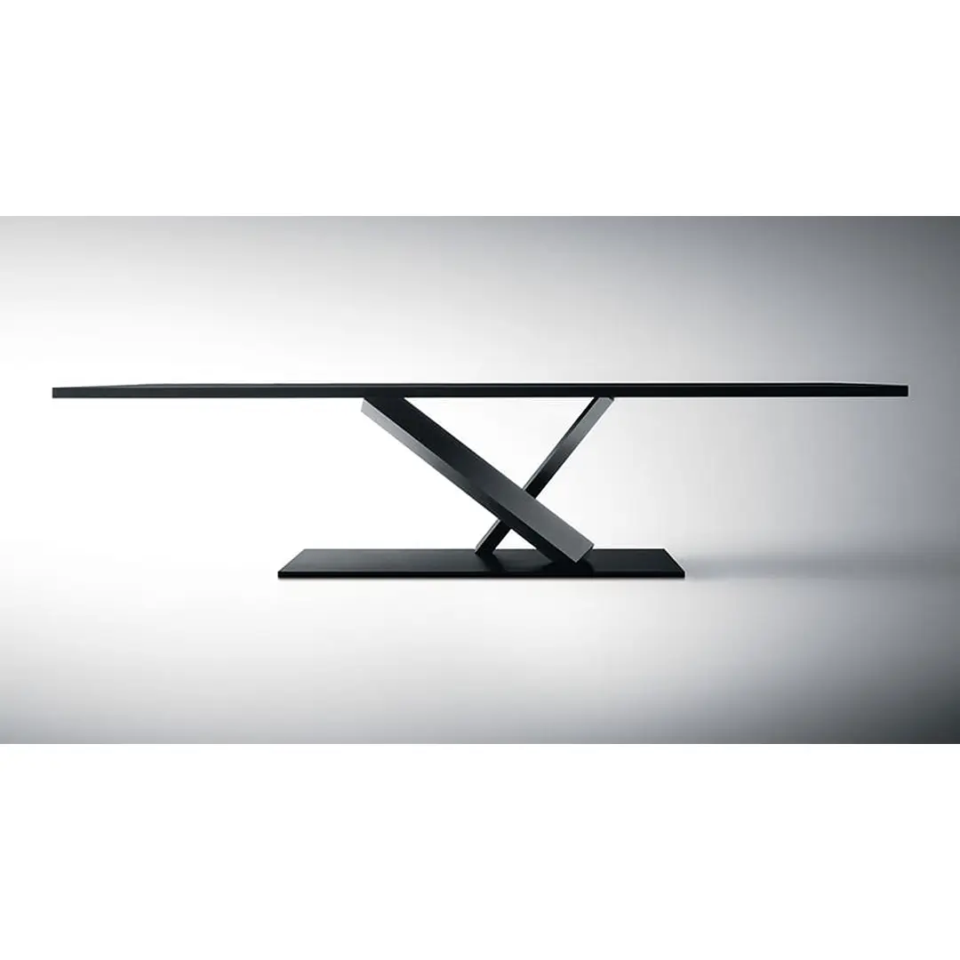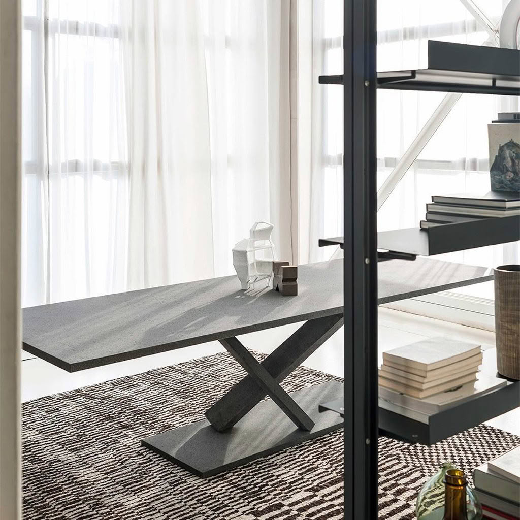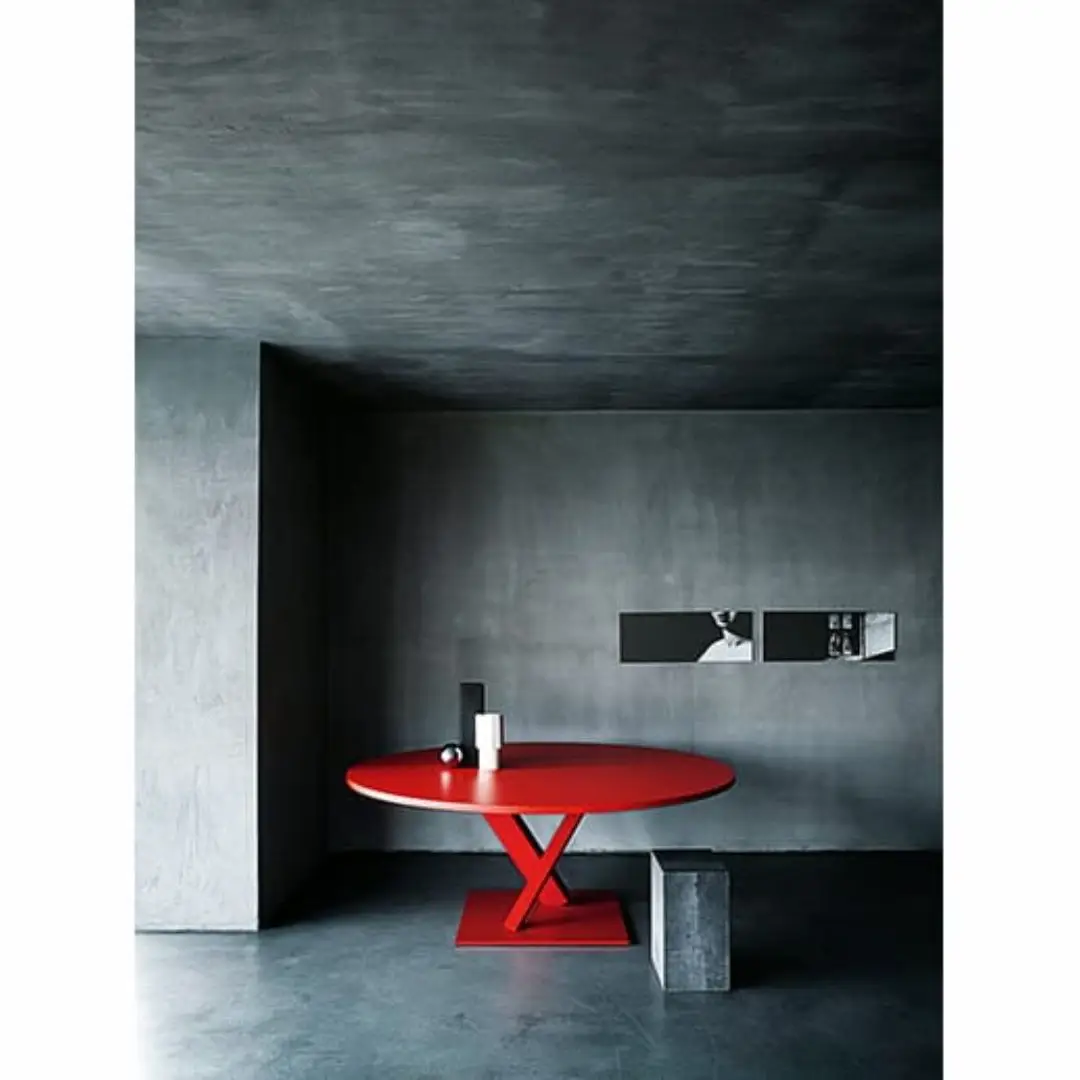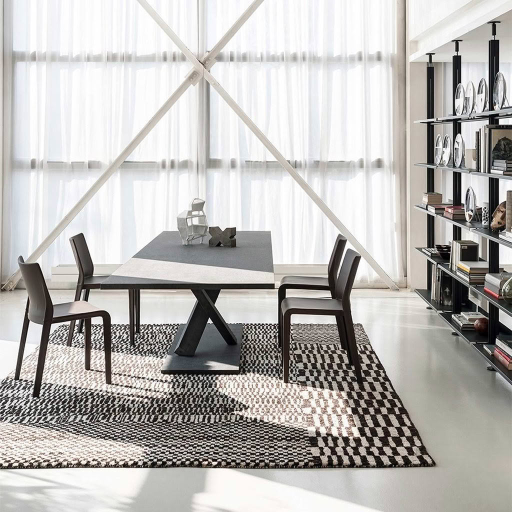 Magically suspended between earth and sky, Element goes beyond the mere function to take a prominent place as a sculpture in an environment. A project that is particularly complex from the engineering perspective, in which all Desalto’s skill and experience in the working of metals are expressed. Disassembling tables with steel structure, legs in reinforced steel tube covered with aluminium sheets, base made of metal sheets and reinforced steel tubes. Tops in: metal lacquered white, black or red; raw iron finished to wax; MDF lacquered white, black or red; wood veneer in the finishes oak and walnut; white lacquered matt glass.